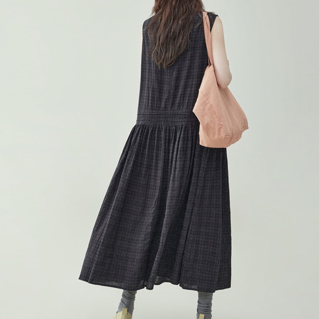 フレンチチェック柄が魅力的なゆったりとしたラウンドネックワンピースです。