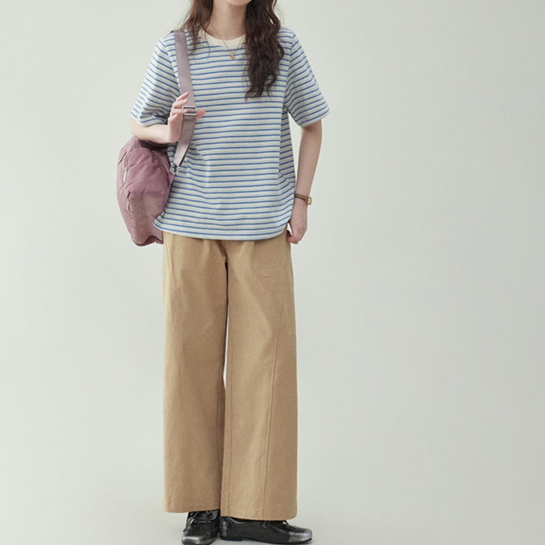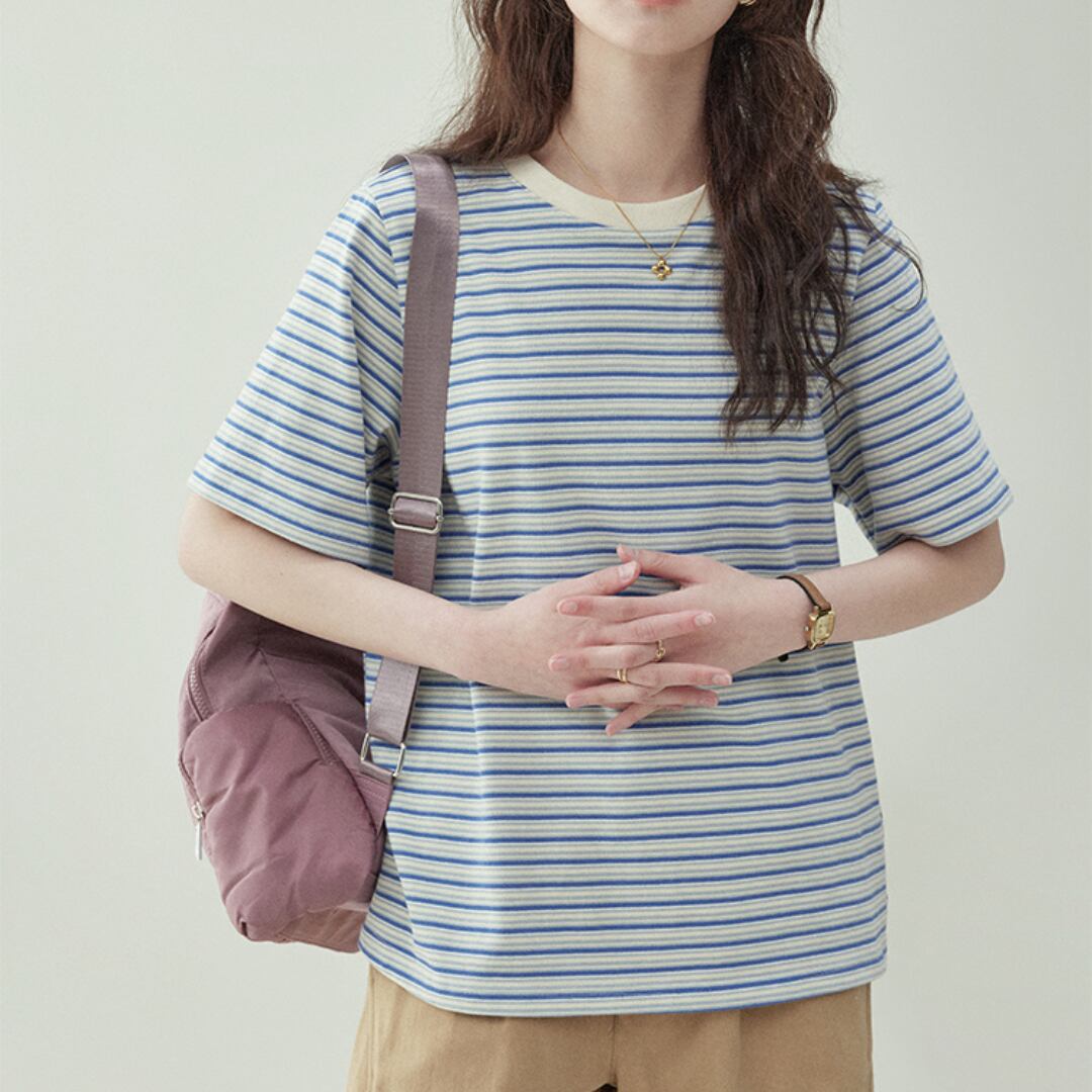 シンプルなブルーストライプデザインが、カジュアルなスタイルを引き立てます。