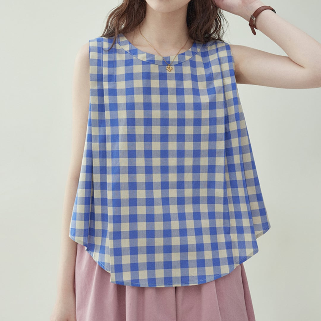 魅力的なスウィートブルーチェック柄のヘムシャツが登場◎