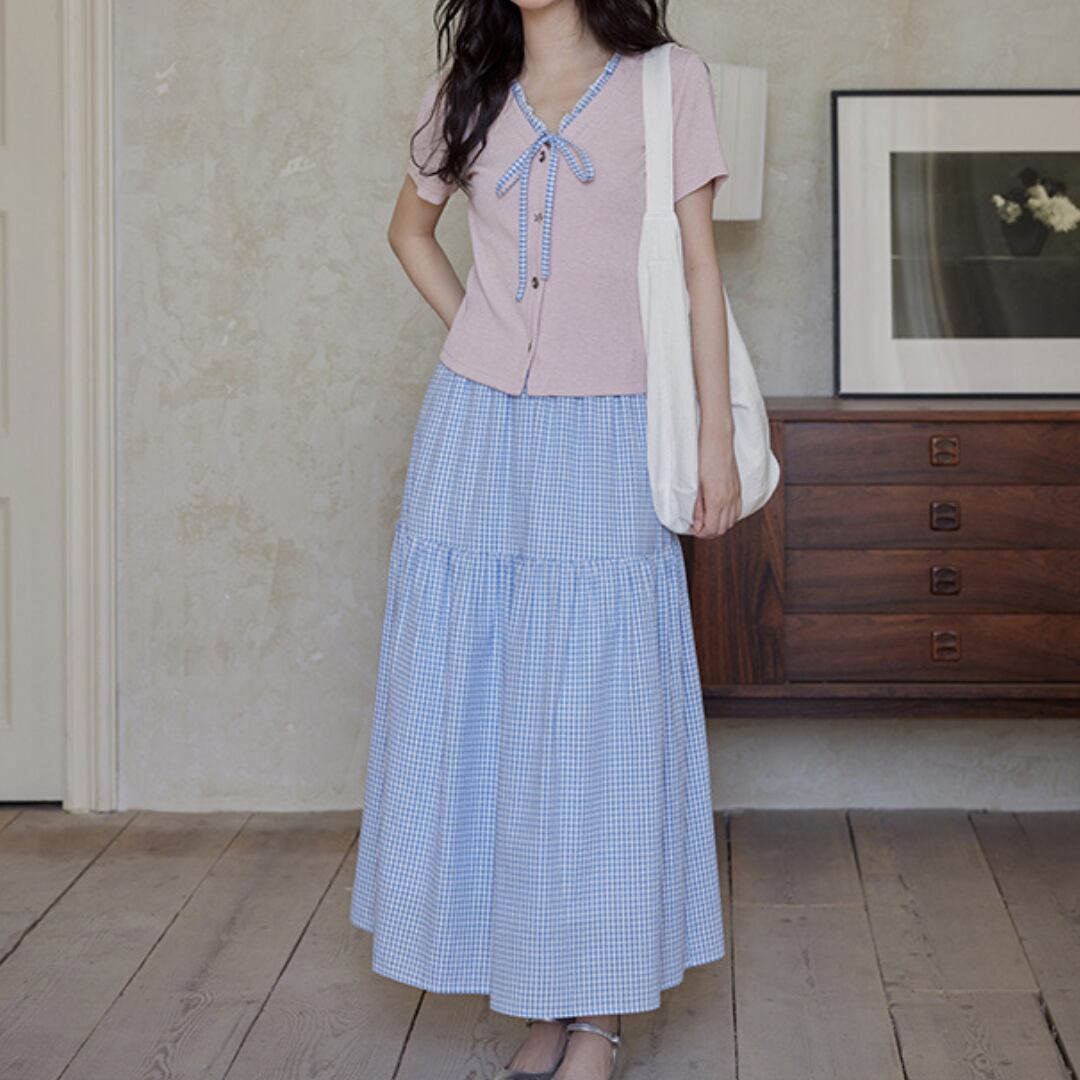 涼しげなブルーチェック柄が魅力のハイウエストスカートです。