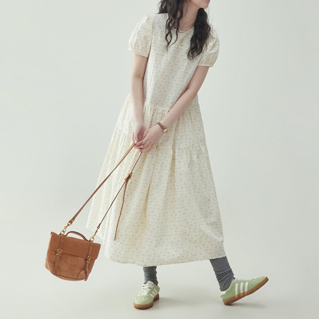 フレンチバブル半袖花柄ロングワンピースが新登場。