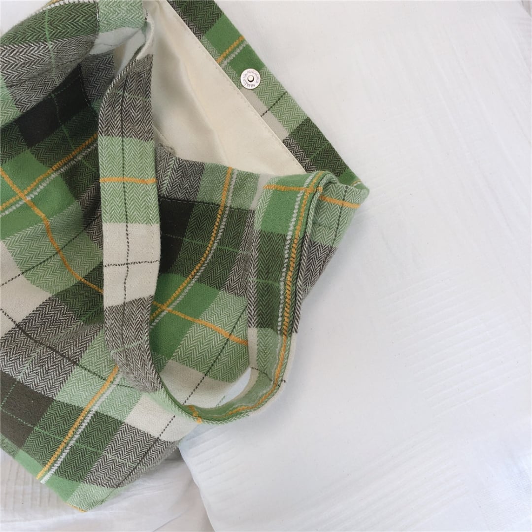 ナチュラルなチェック柄が目を引く、カジュアル感たっぷりのキャンバストートバッグ。