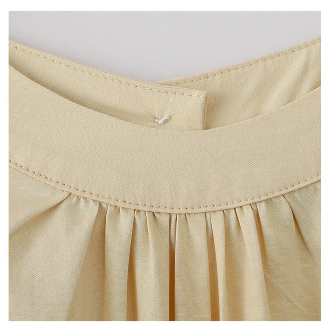 優しい色合いのイエローがコーデ全体を華やかにし、ゆったりとしたシルエットで風通しも良く、夏のリラックスコーデにぴったりの一枚です。