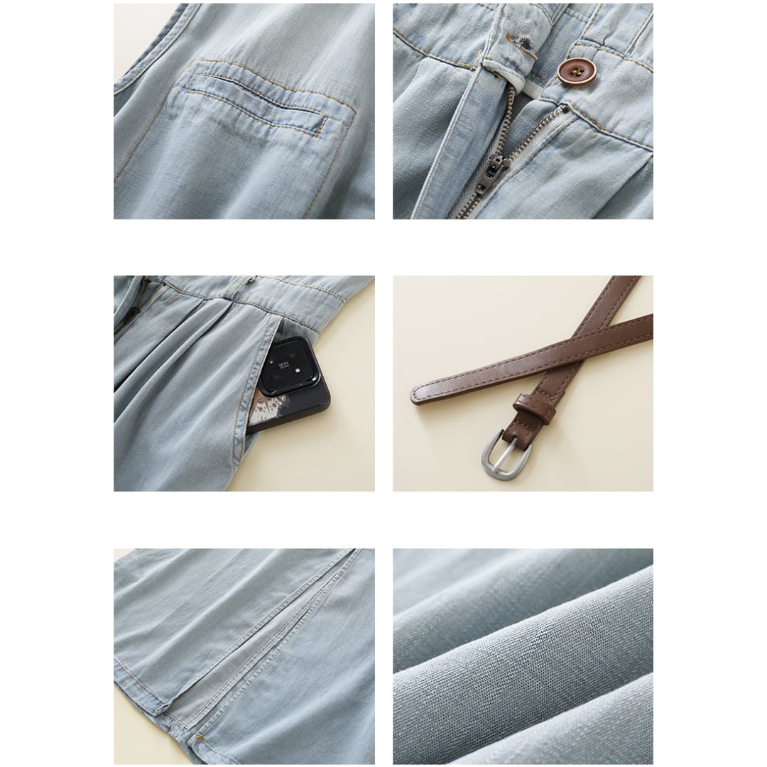 デニムの風合いとポロカラーが爽やかな印象を与える、ウエストマーク付きのシャツワンピース。