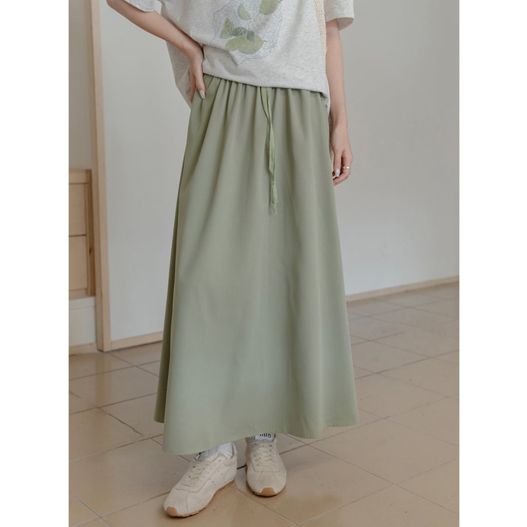 ナチュラルな風合いと繊細な刺繍が魅力の、高腰デザインのAラインスカート。