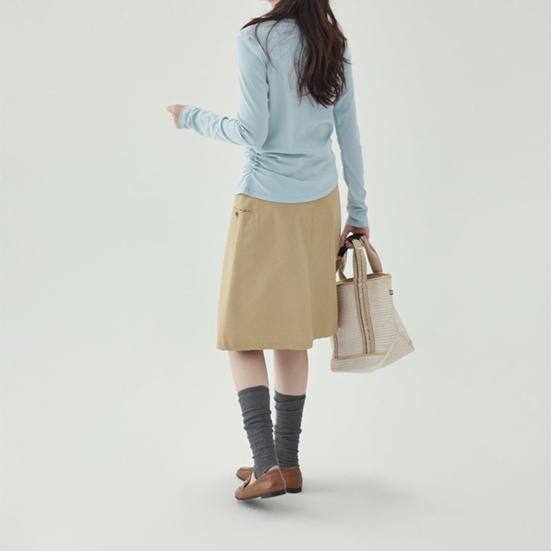サイドのギャザーディテールが女性らしいシルエットを演出する、シンプルな長袖プルオーバー。