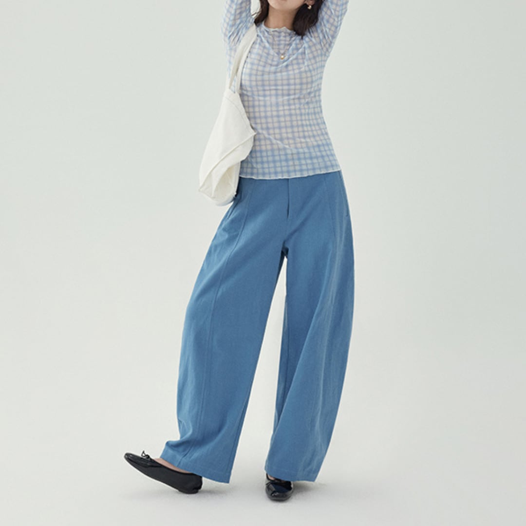 柔らかな薄手素材にチェック柄をあしらったフェミニンなトップスです。