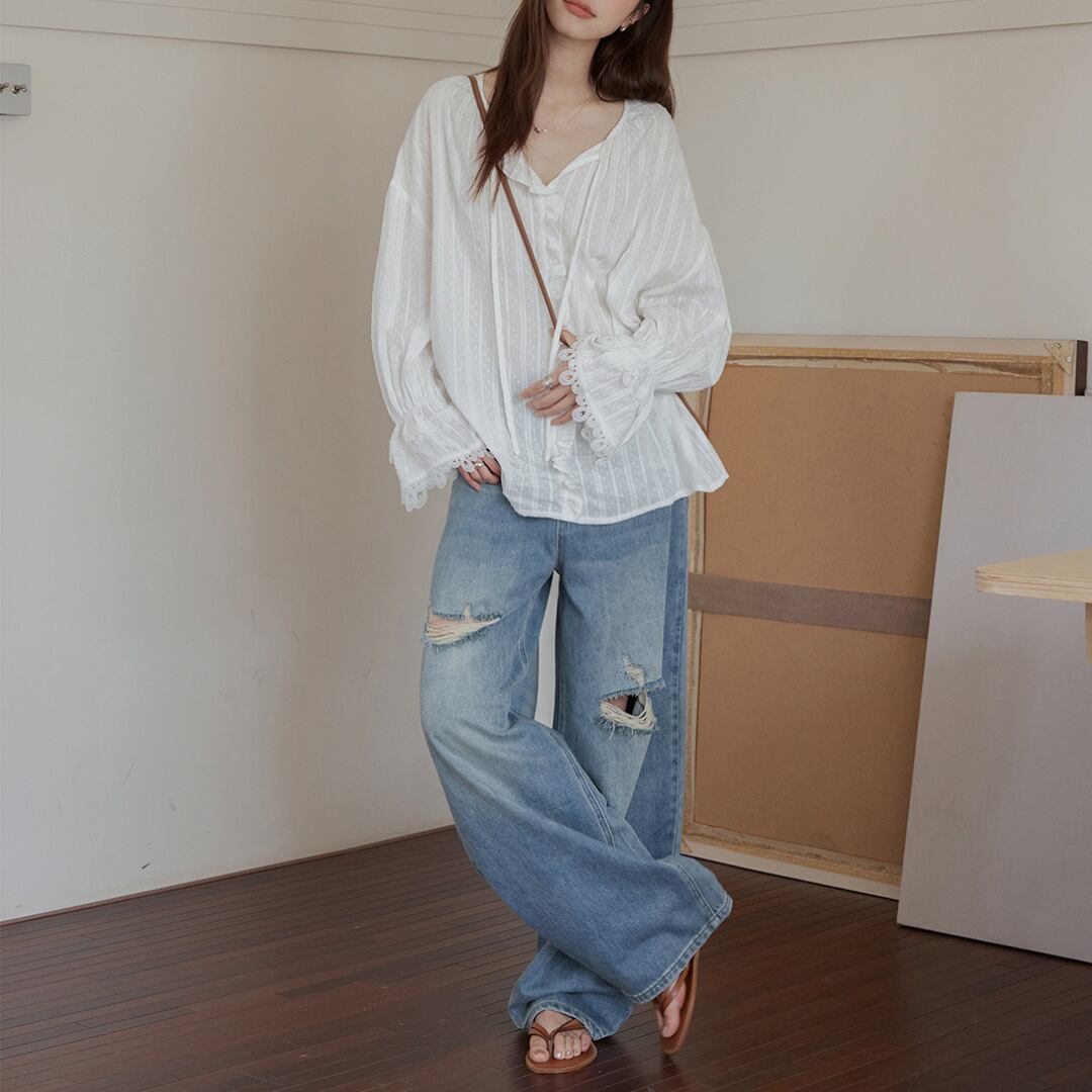distressed wide denim pants