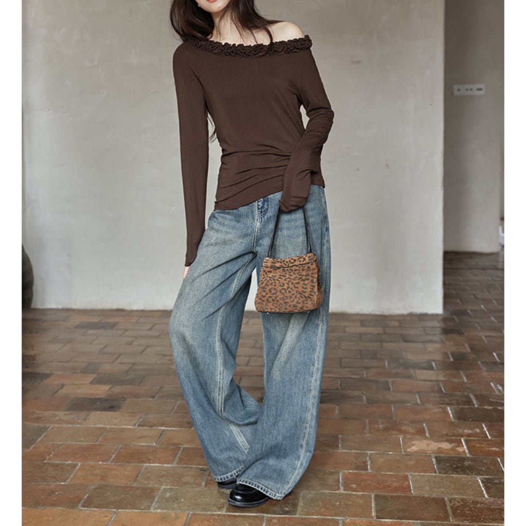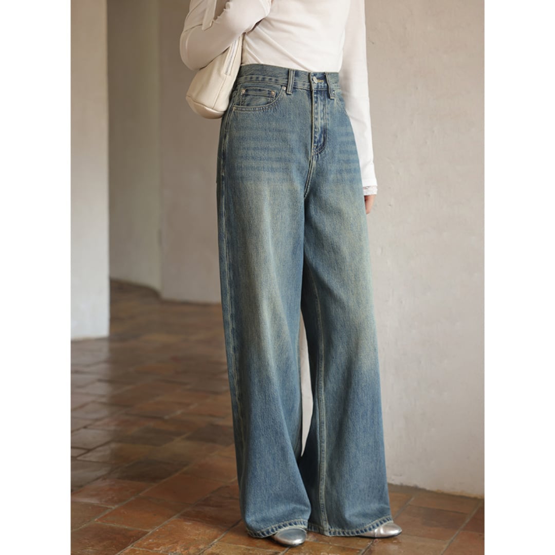 程よくゆとりのあるシルエットと、ヴィンテージ感を演出する色落ち加工が魅力のワイドデニムパンツ。