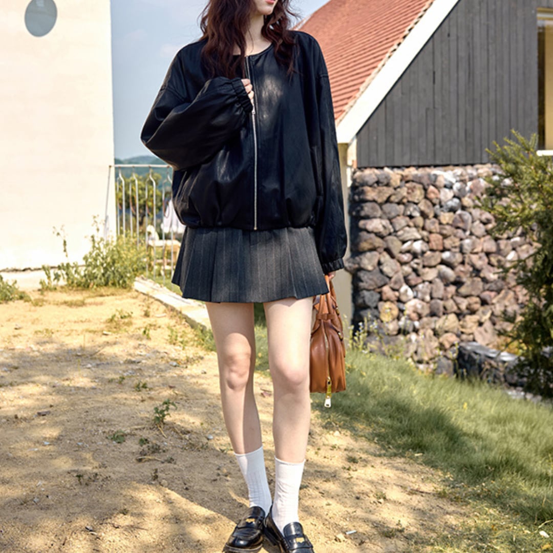 ゆったりとしたシルエットで羽織りやすく、秋のカジュアルスタイルに最適な一着です。