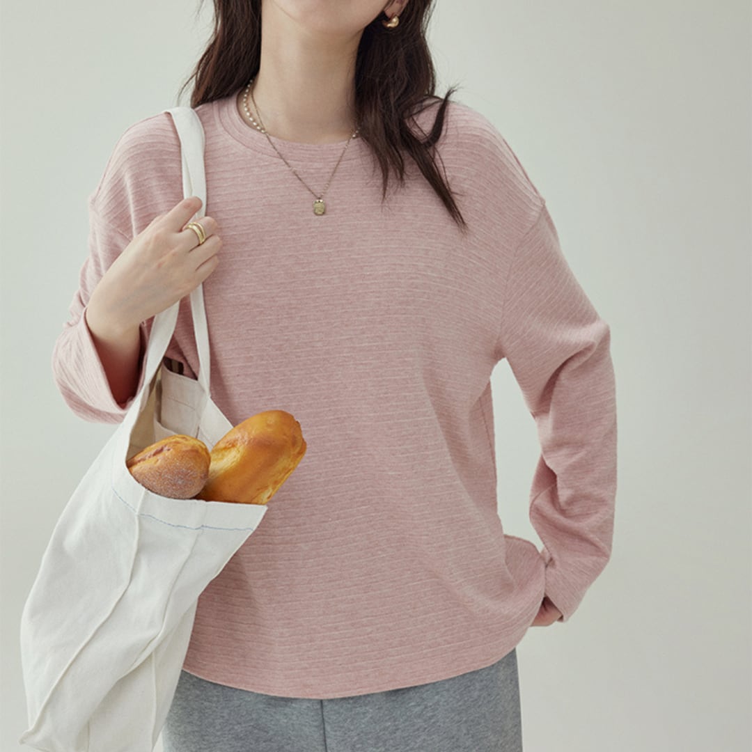 軽やかな素材感で肌触りが良く、秋のリラックススタイルにぴったりの一枚です。