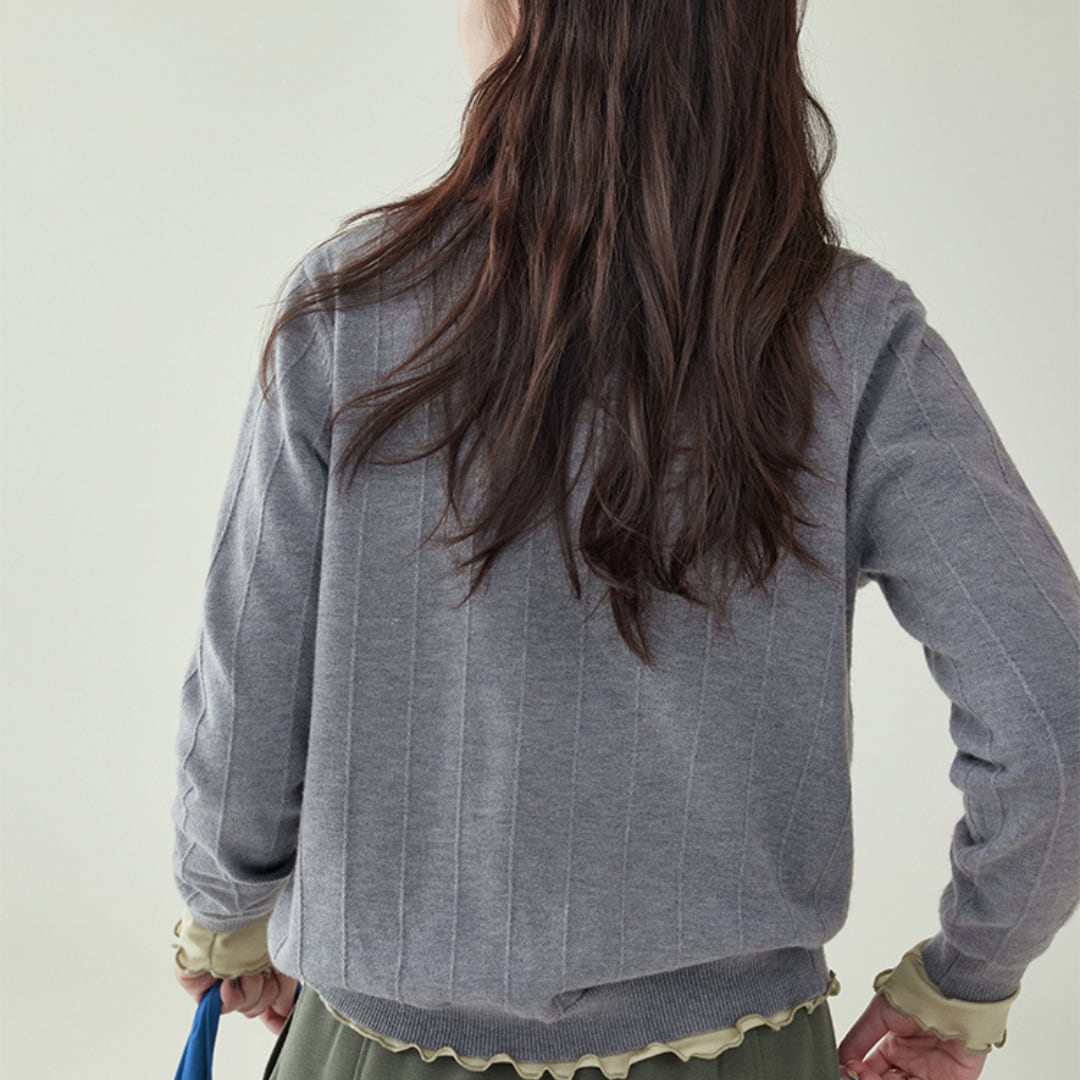 シャツやハイネックとレイヤードしやすく、軽い羽織としても重宝する一着です。