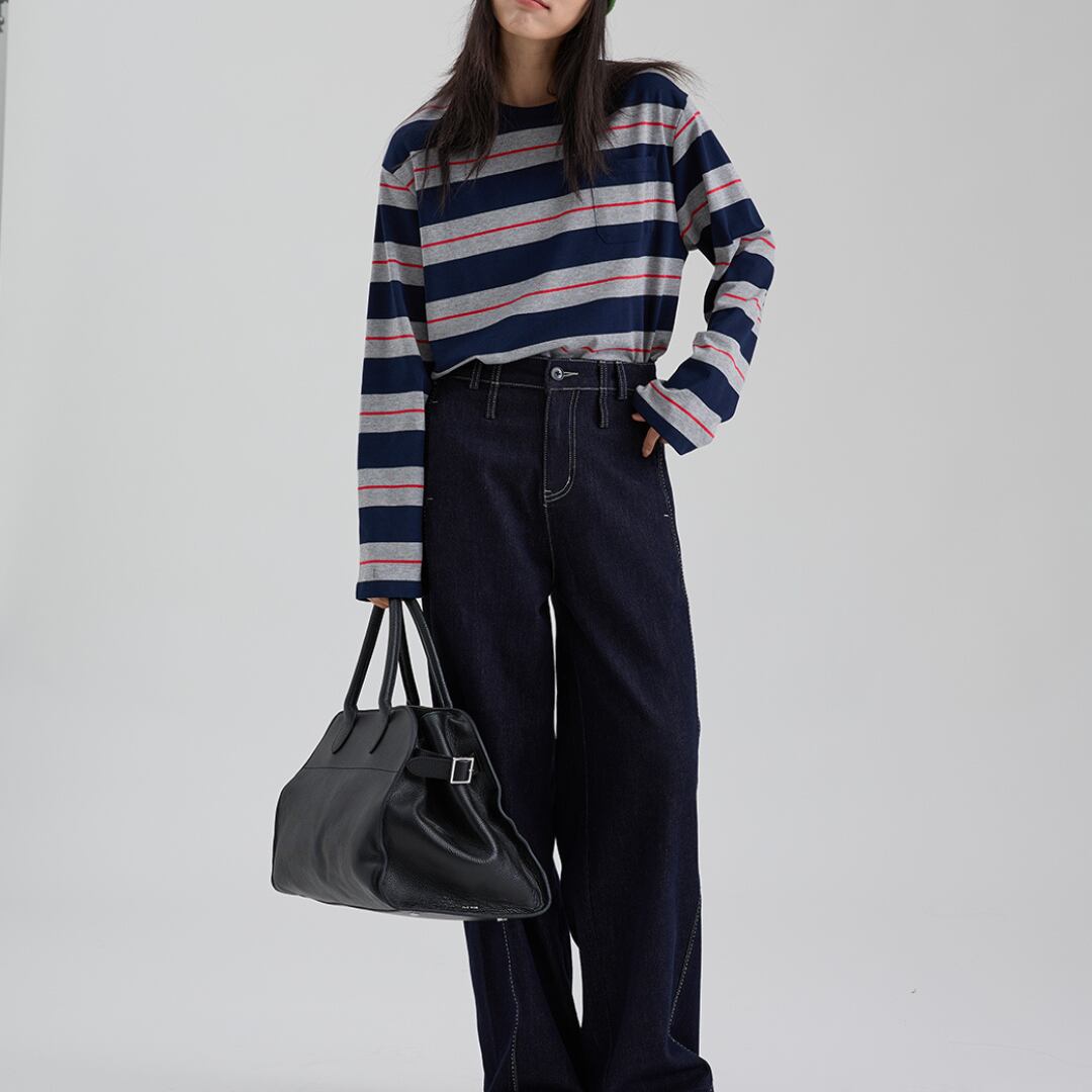 ヴィンテージ感のある配色ボーダーが目を引く、ゆったりシルエットの長袖カットソー。