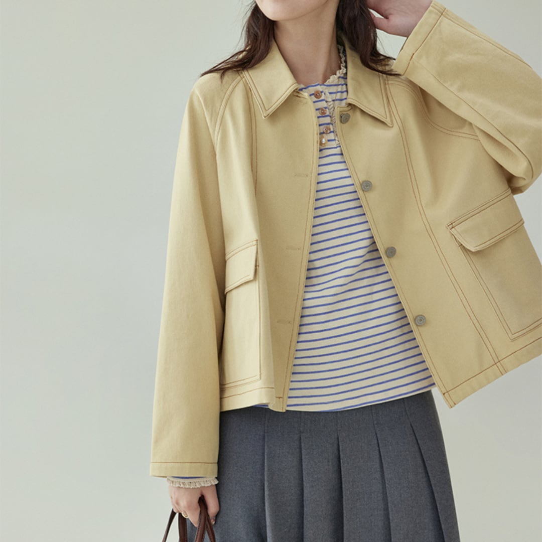ストレッチの効いた素材で着心地がよく、カジュアルコーデに華やかさを添える一枚です。