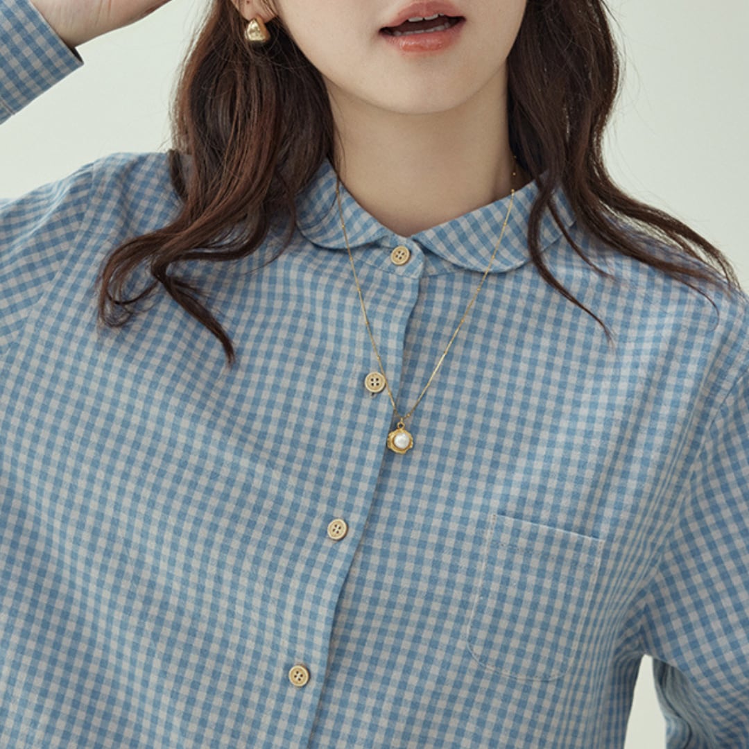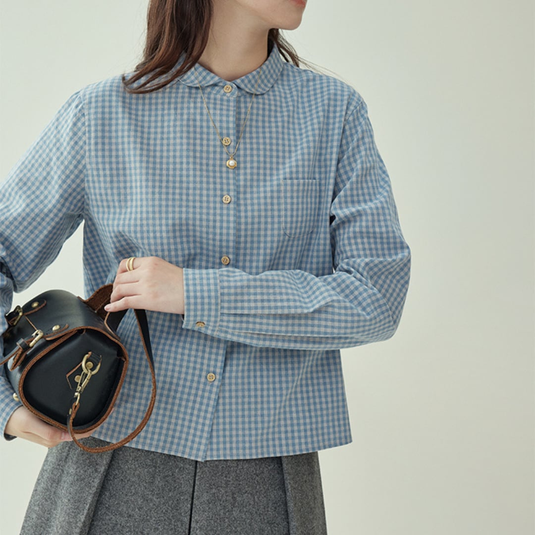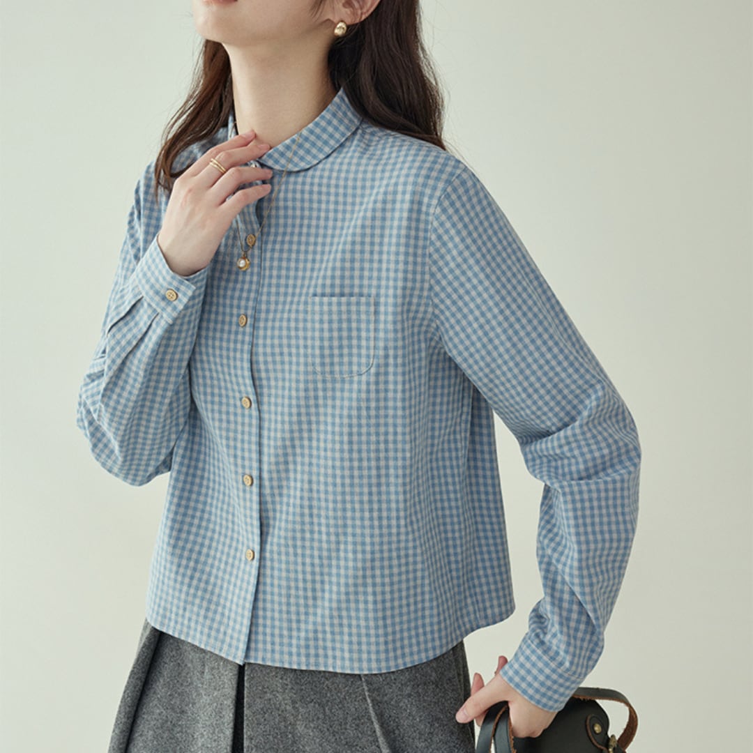 ナチュラルな風合いのコットン素材に、細かなチェック柄をあしらった長袖シャツです。