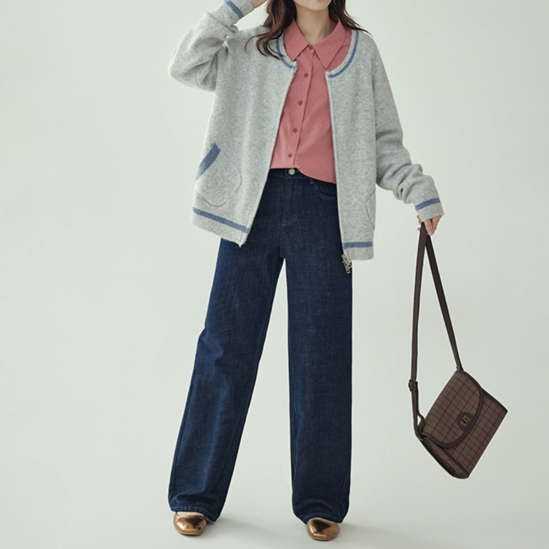 color trim zip cardigan