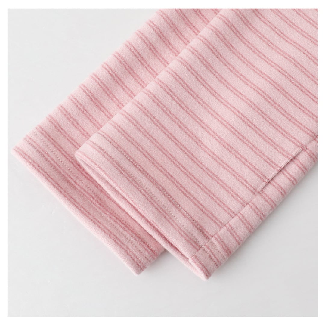 やわらかな風合いと程よい伸縮性で快適な着心地のピンクボーダープルオーバー。