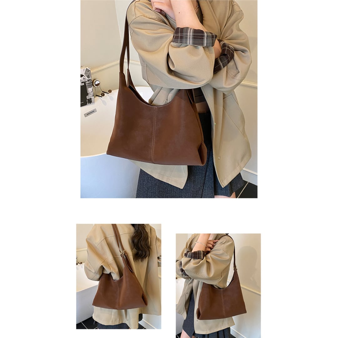 スエード調のマットな質感とゆるやかな曲線が特徴の、ワンショルダートートバッグです。