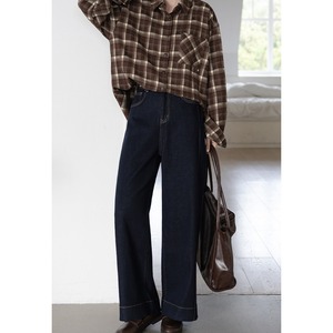 ゆったりとしたシルエットと深めの股上が魅力のワイドデニムパンツ。
