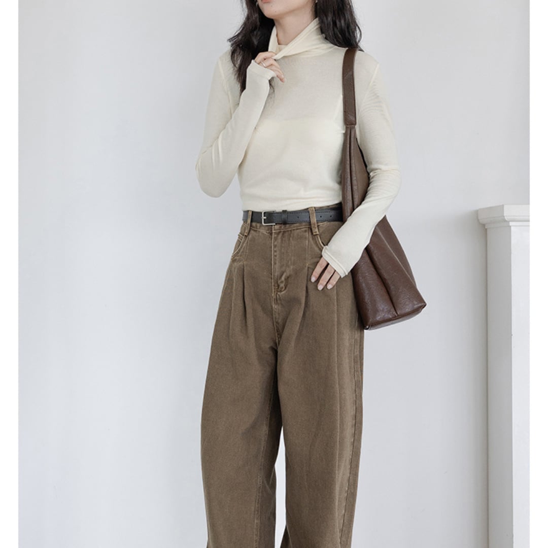 シンプルなシルエットに上品なタートルネックが映える、女性らしさを引き立てるカットソー。