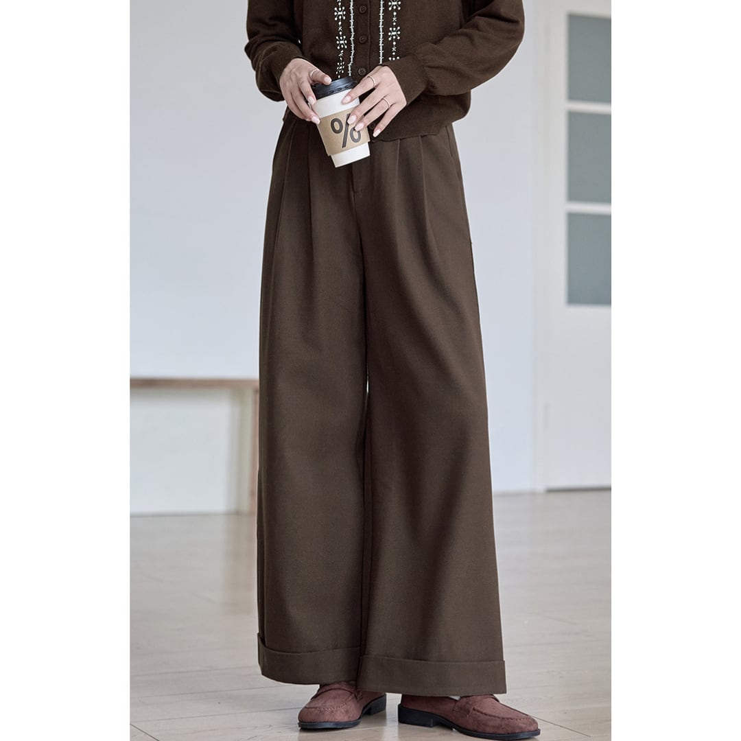 裾の折り返しデザインがポイントになった、トレンド感あるワイドシルエットパンツ。