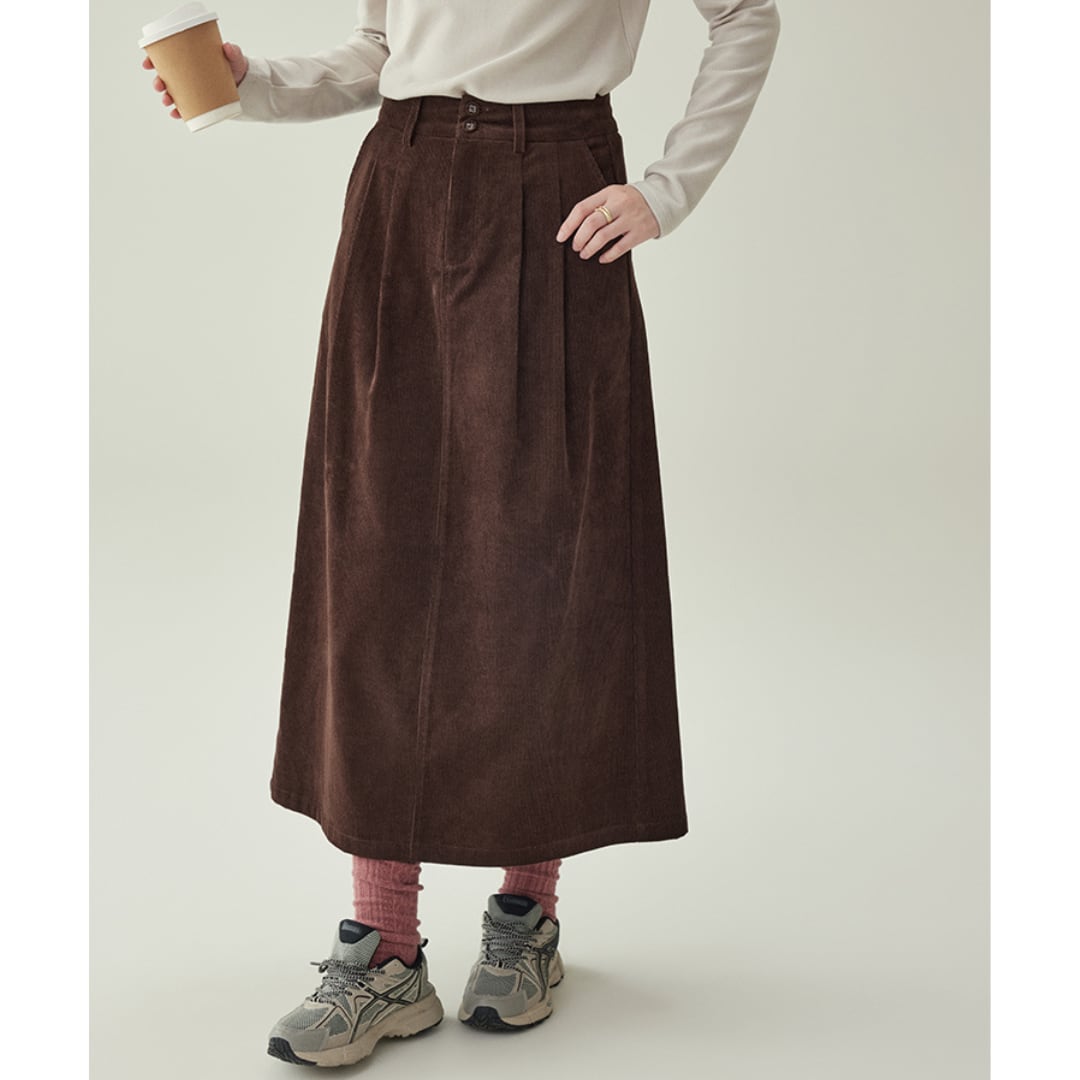 前後に施されたプリーツと高めのウエストデザインが、シルエットを美しく引き立てるAラインスカート。
