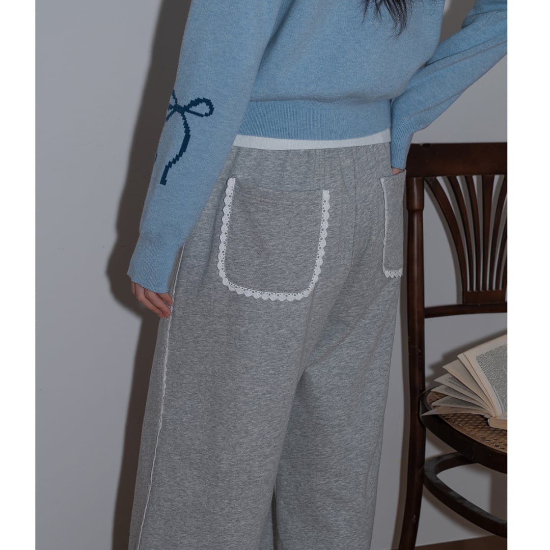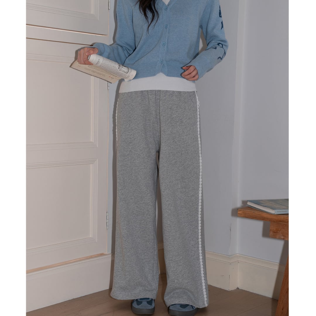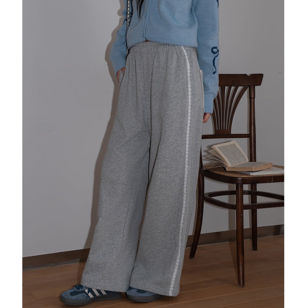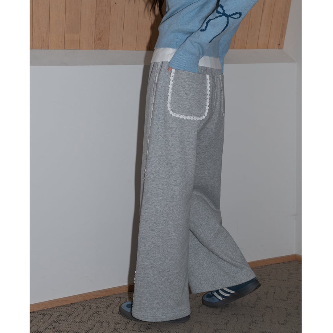 lace trim wide pants