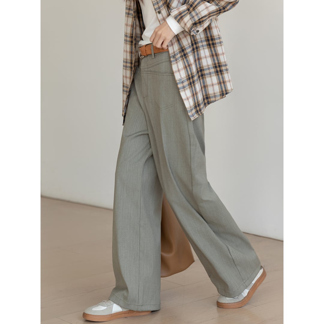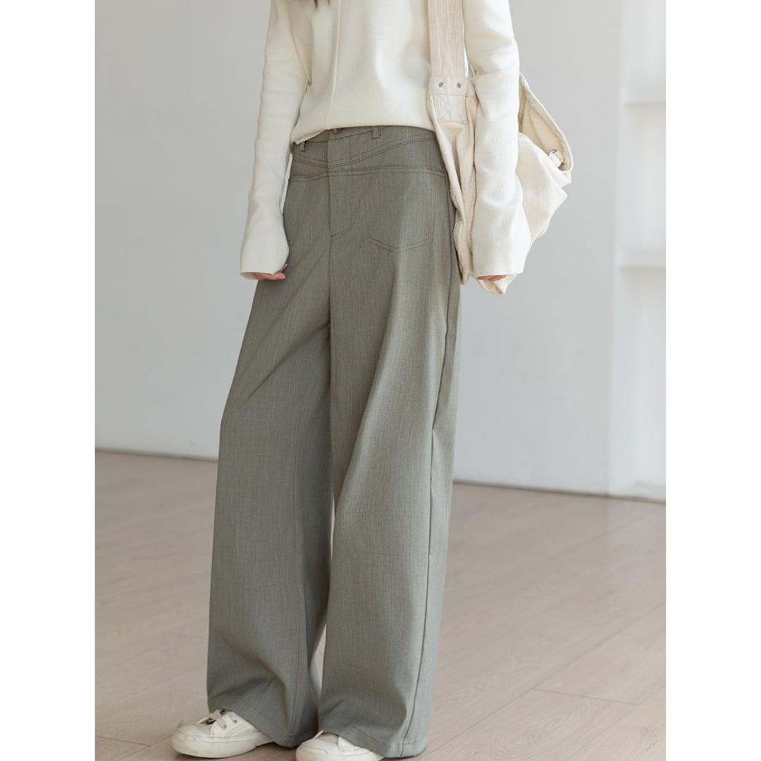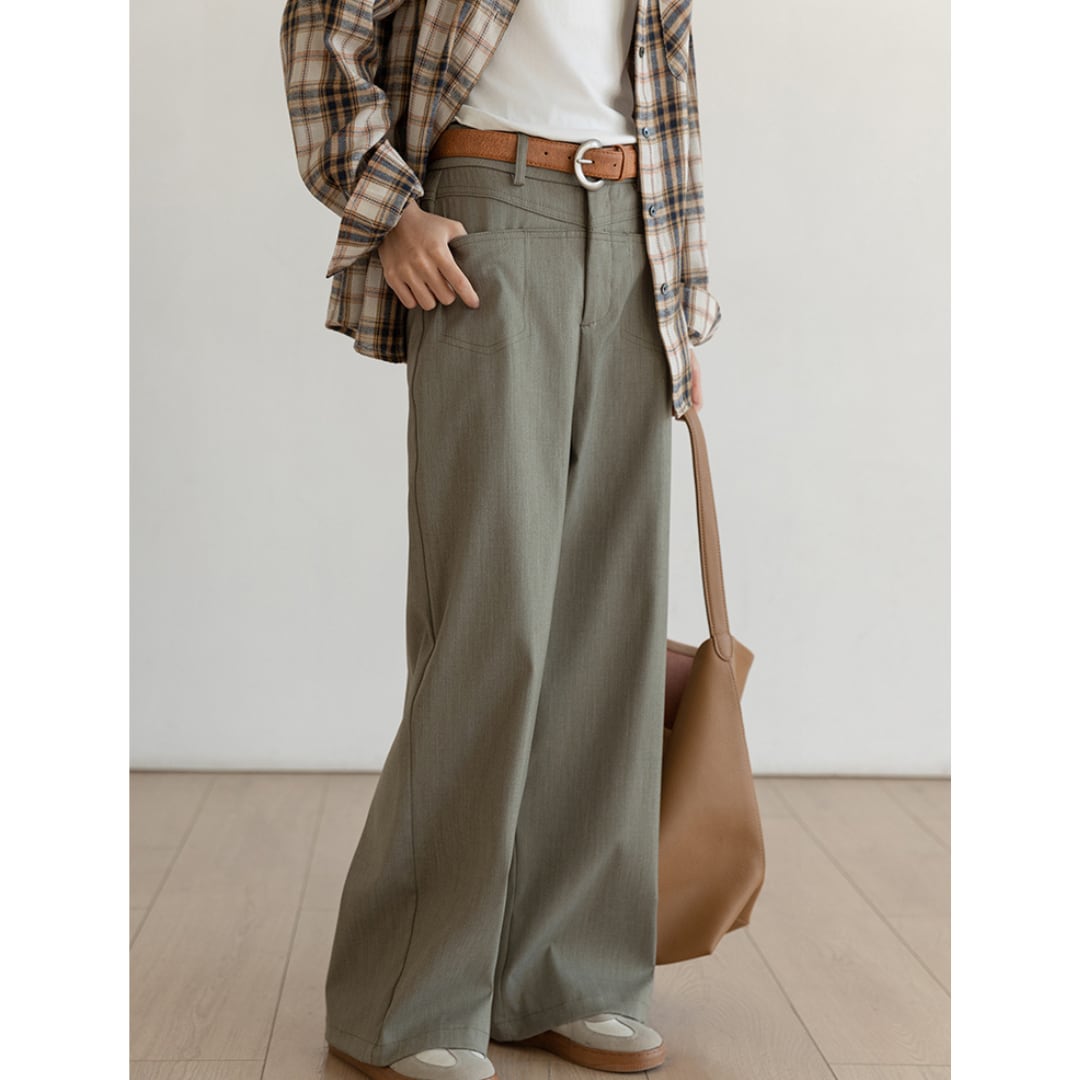 やわらかな落ち感とハイウエスト設計で、秋のオフィスカジュアルやお出かけスタイルに最適です。