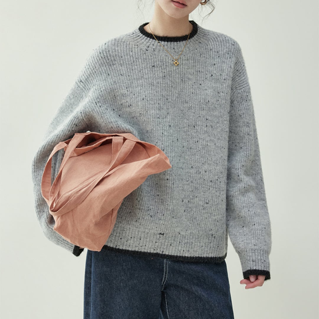 霜降り調のミックス糸にさりげないバイカラーを効かせた、ゆったりシルエットのニットトップス。 一枚で主役になり、秋冬のカジュアルスタイルに取り入れやすいアイテムです。 【カラー】 グレー、ブルー 【サイズ】 S 着丈:59cm 胸囲:113cm 肩幅:43cm 袖丈:52cm M 着丈:60cm 胸囲:116cm 肩幅:44cm 袖丈:53cm L 着丈:61cm 胸囲:119cm 肩幅:45cm 袖丈:54cm モデル身長168cm 着用サイズM 【素材】 ポリエチレンテレフタレート(ポリエステル)47%、羊毛5%、ポリウレタン(スパンデックス)3% ♦︎選べるお支払い方法 ・クレジットカード決済(VISA/Master/JCB/AMEX) ・キャリア決済(docomo/au/Softbank/Y!mobile) ・Amazon pay(ご利用不可の期間あり) ・Pay-easy ・後払い決済 ✴︎ Erz. ranking top 10 ✴︎ こちらから↓ https://www.erzofficial.com/categories/3617358 [ pickup item]イチオシアイテム↓ https://www.erzofficial.com/categories/3558579 Erz.がご提案する大人のレトロカジュアルって? https://www.erzofficial.com/blog/2021/09/06/123341 【お届けについて】 こちらの商品は海外店舗より直接発送となる為、 ご入金から最短10日〜4週間前後で発送致します。 ◼️注意事項 ・タイミングによっては 商品在庫切れにより 注文キャンセルとさせていただく恐れもございますので、予めご了承くださいませ。 ・こちらは輸入品となります。日本製とは検品基準が異なる為、 ・新品未使用品でもごくわずかな汚れや ほつれがある場合もございます。 ・明らかな不良があった場合お手数ですが、お早めにご連絡をお願い致します。 ご確認後、ご返金、返品対応させていただきますのでご安心ください。 ・仕入れ工場を変えることがあるため、記載サイズと若干異なる場合がございます。 ・商品の色味は、お手持ちのスマートフォンの画面によって実物と若干異なる場合がございます。 ・イメージ違いやサイズ交換等、不良品以外の返品は対応出来かねます。 ・ご注文後のキャンセルは、ご遠慮いただいております。 ———————————— ご購入前にこちらをお読みください。 https://alroom.thebase.in/about 商品番号 NT317Y