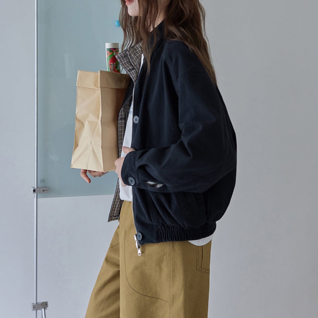 チェック柄と無地が楽しめるリバーシブル仕様で、着こなしの幅が広がるカジュアルジャケット。