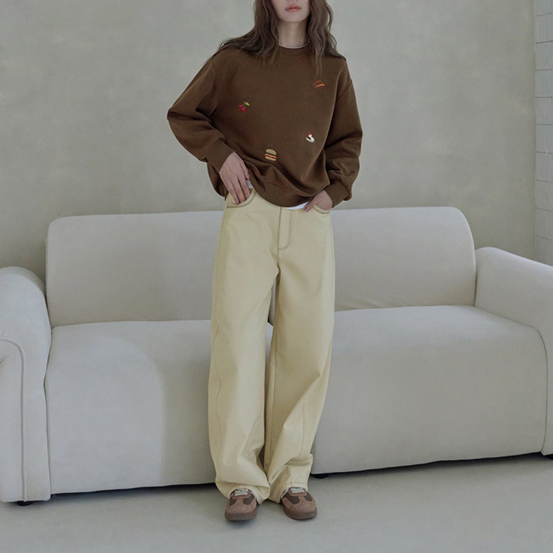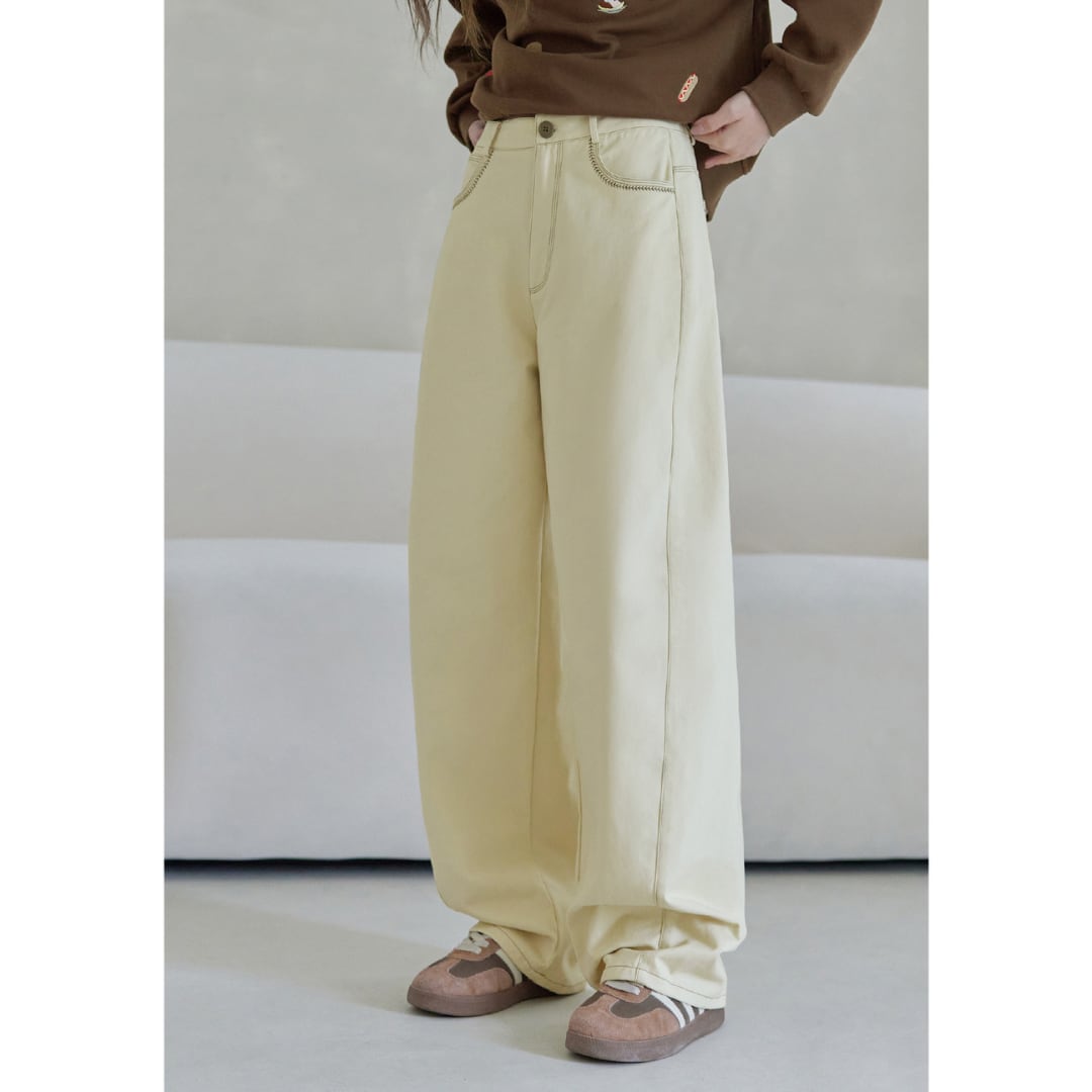 すっきりとしたシルエットと高めのウエストラインが魅力のストレートパンツ。