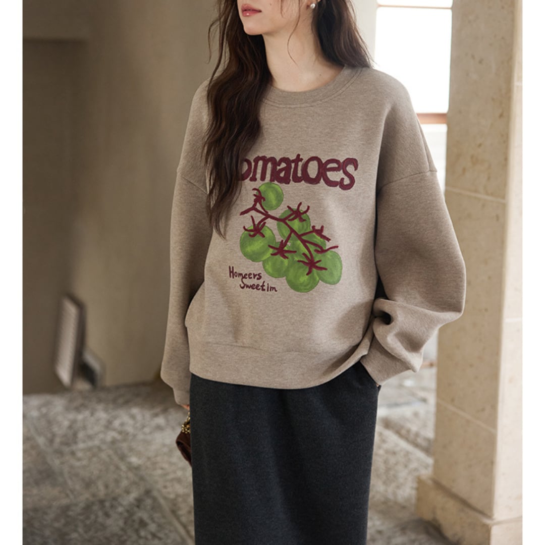 遊び心のあるプリントが目を引く、ゆったりシルエットのオーバースウェット。
