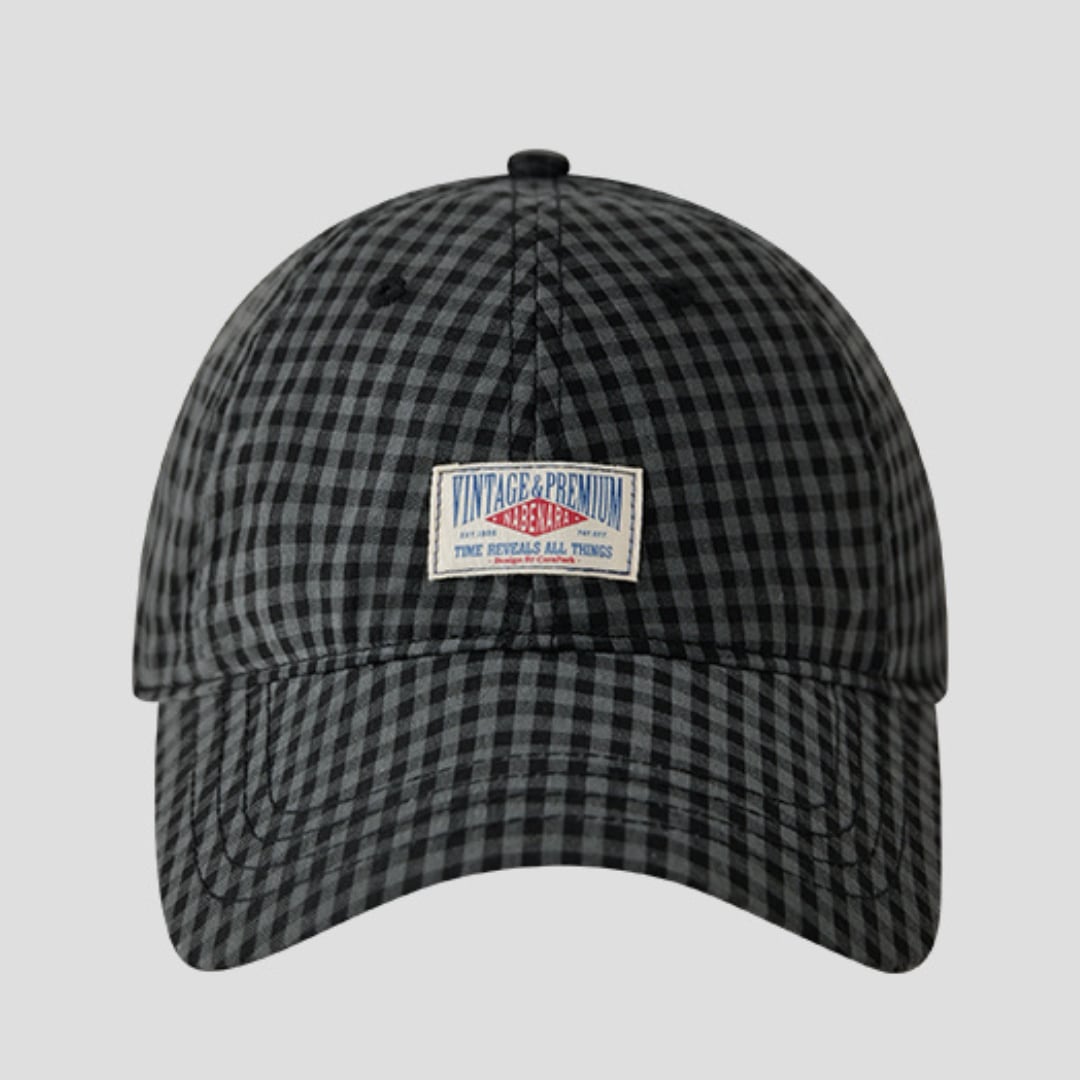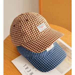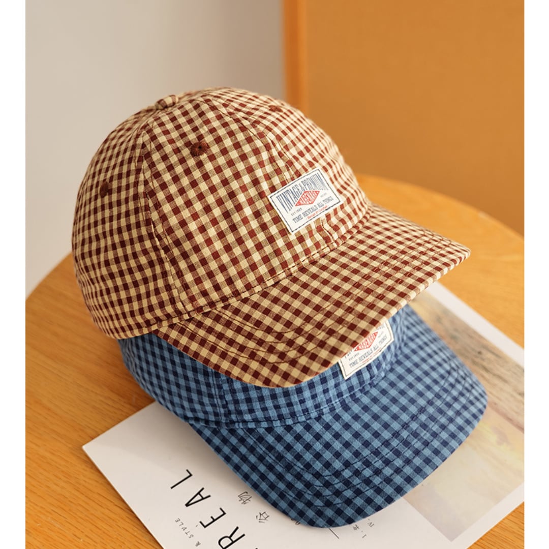 クラシカルなギンガムチェック柄が目を引く、ラウンド型のカジュアルキャップ。