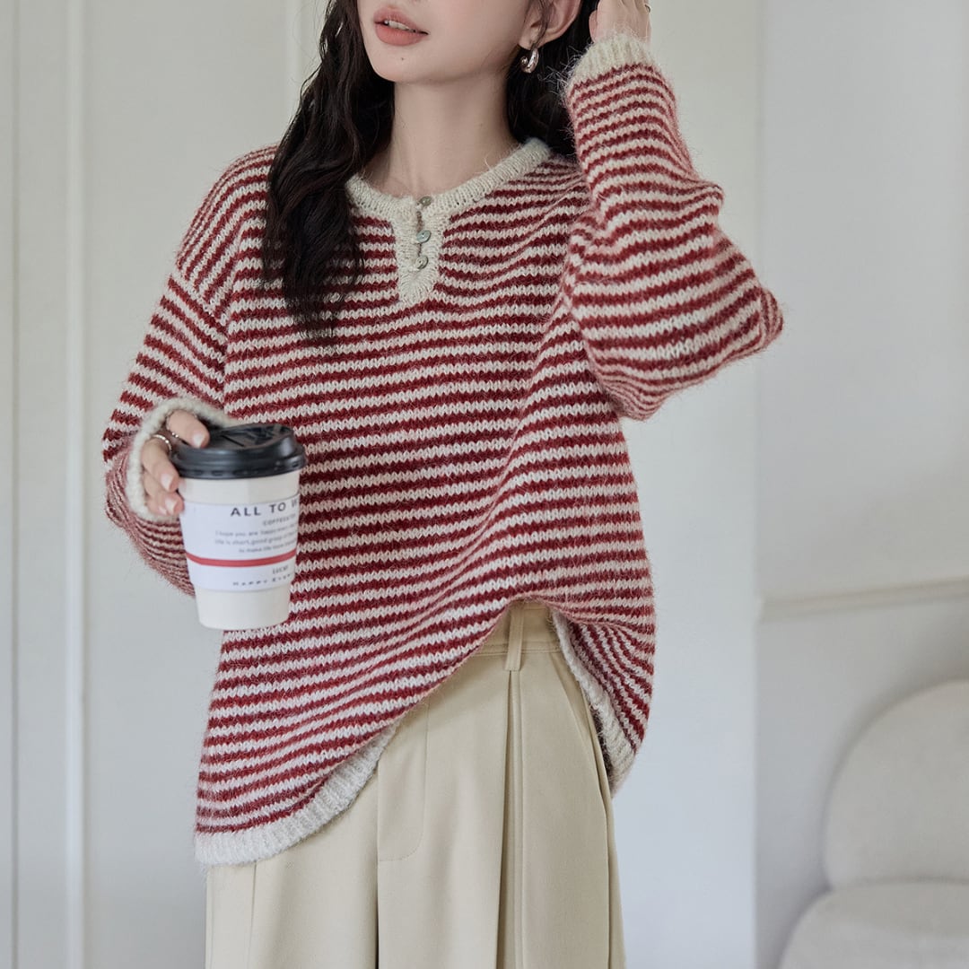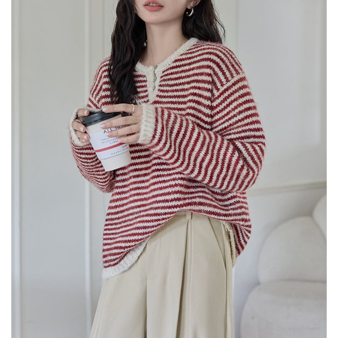 柔らかい素材感とボーダー柄が特徴の、ボタン付きデザインがアクセントになったプルオーバートップス。 ゆったりとしたシルエットで着心地も良く、秋冬のリラックスカジュアルにぴったりなアイテムです。 【カラー】 レッド、グレー 【サイズ】 S 着丈:53cm 胸囲:102cm 肩幅:43cm 袖丈:52cm M 着丈:54cm 胸囲:106cm 肩幅:44cm 袖丈:53cm L 着丈:55cm 胸囲:110cm 肩幅:45cm 袖丈:54cm モデル身長163cm 着用サイズS ♦︎選べるお支払い方法 ・クレジットカード決済(VISA/Master/JCB/AMEX) ・キャリア決済(docomo/au/Softbank/Y!mobile) ・Amazon pay(ご利用不可の期間あり) ・Pay-easy ・後払い決済 ✴︎ Erz. ranking top 10 ✴︎ こちらから↓ https://www.erzofficial.com/categories/3617358 [ pickup item]イチオシアイテム↓ https://www.erzofficial.com/categories/3558579 Erz.がご提案する大人のレトロカジュアルって? https://www.erzofficial.com/blog/2021/09/06/123341 【お届けについて】 こちらの商品は海外店舗より直接発送となる為、 ご入金から最短10日〜4週間前後で発送致します。 ◼️注意事項 ・タイミングによっては 商品在庫切れにより 注文キャンセルとさせていただく恐れもございますので、予めご了承くださいませ。 ・こちらは輸入品となります。日本製とは検品基準が異なる為、 ・新品未使用品でもごくわずかな汚れや ほつれがある場合もございます。 ・明らかな不良があった場合お手数ですが、お早めにご連絡をお願い致します。 ご確認後、ご返金、返品対応させていただきますのでご安心ください。 ・仕入れ工場を変えることがあるため、記載サイズと若干異なる場合がございます。 ・商品の色味は、お手持ちのスマートフォンの画面によって実物と若干異なる場合がございます。 ・イメージ違いやサイズ交換等、不良品以外の返品は対応出来かねます。 ・ご注文後のキャンセルは、ご遠慮いただいております。 ———————————— ご購入前にこちらをお読みください。 https://alroom.thebase.in/about 商品番号 NT323Y