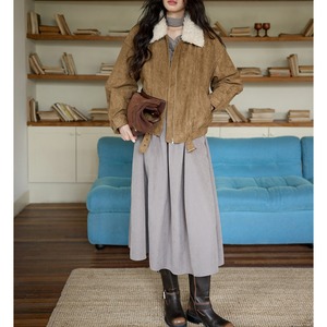 ゆったりとしたシルエットと裏地付きの厚手仕様で、冬の防寒アウターとして活躍します。