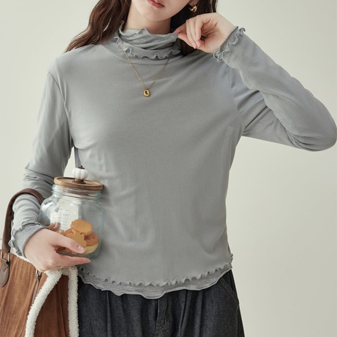 さりげないフリルネックと袖口のメロウ仕上げが魅力の、柔らかな印象を演出する長袖トップス。 一枚でもレイヤードでも活躍し、秋のデイリースタイルに優しくなじむアイテムです。 【カラー】 グレー、ピンク 【サイズ】 S 着丈:51cm 胸囲:84cm 肩幅:36cm 袖丈:57cm M 着丈:52cm 胸囲:88cm 肩幅:37cm 袖丈:58cm L 着丈:53cm 胸囲:92cm 肩幅:38cm 袖丈:59cm モデル身長168cm 着用サイズM 【素材】 ポリウレタン(スパンデックス)11% ♦︎選べるお支払い方法 ・クレジットカード決済(VISA/Master/JCB/AMEX) ・キャリア決済(docomo/au/Softbank/Y!mobile) ・Amazon pay(ご利用不可の期間あり) ・Pay-easy ・後払い決済 ✴︎ Erz. ranking top 10 ✴︎ こちらから↓ https://www.erzofficial.com/categories/3617358 [ pickup item]イチオシアイテム↓ https://www.erzofficial.com/categories/3558579 Erz.がご提案する大人のレトロカジュアルって? https://www.erzofficial.com/blog/2021/09/06/123341 【お届けについて】 こちらの商品は海外店舗より直接発送となる為、 ご入金から最短10日〜4週間前後で発送致します。 ◼️注意事項 ・タイミングによっては 商品在庫切れにより 注文キャンセルとさせていただく恐れもございますので、予めご了承くださいませ。 ・こちらは輸入品となります。日本製とは検品基準が異なる為、 ・新品未使用品でもごくわずかな汚れや ほつれがある場合もございます。 ・明らかな不良があった場合お手数ですが、お早めにご連絡をお願い致します。 ご確認後、ご返金、返品対応させていただきますのでご安心ください。 ・仕入れ工場を変えることがあるため、記載サイズと若干異なる場合がございます。 ・商品の色味は、お手持ちのスマートフォンの画面によって実物と若干異なる場合がございます。 ・イメージ違いやサイズ交換等、不良品以外の返品は対応出来かねます。 ・ご注文後のキャンセルは、ご遠慮いただいております。 ———————————— ご購入前にこちらをお読みください。 https://alroom.thebase.in/about 商品番号 TP297Y