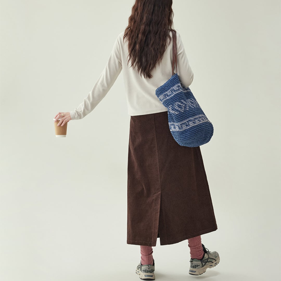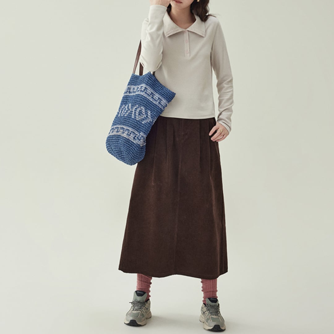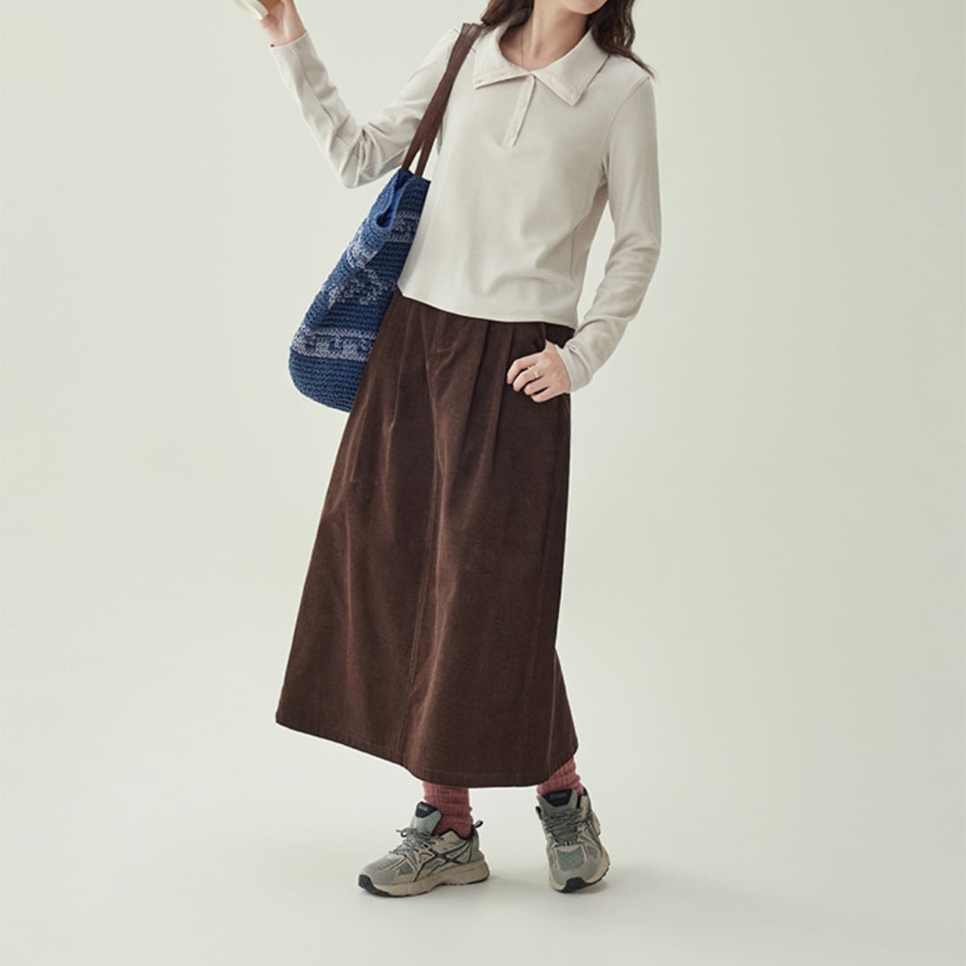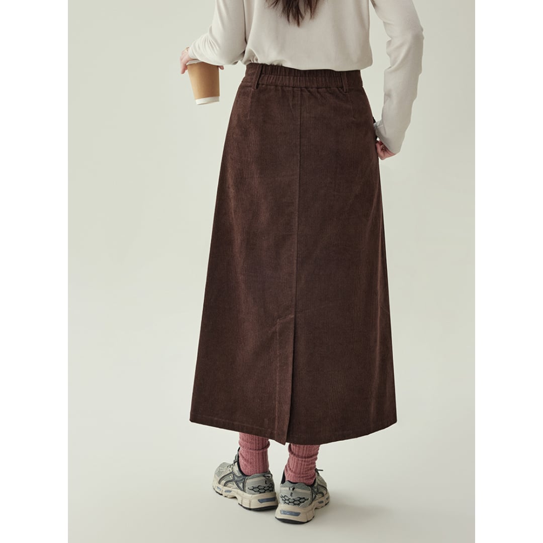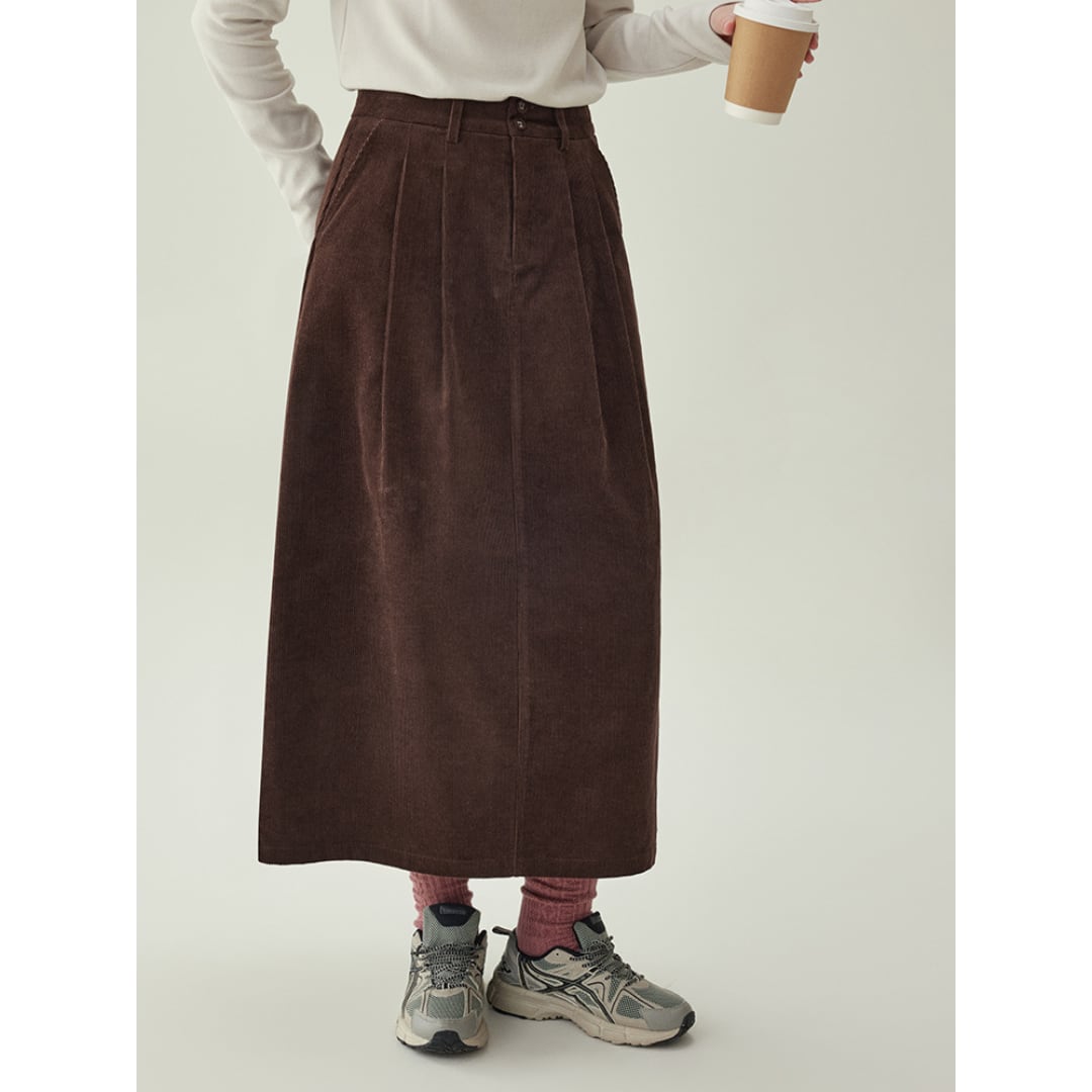 corduroy tuck long skirt