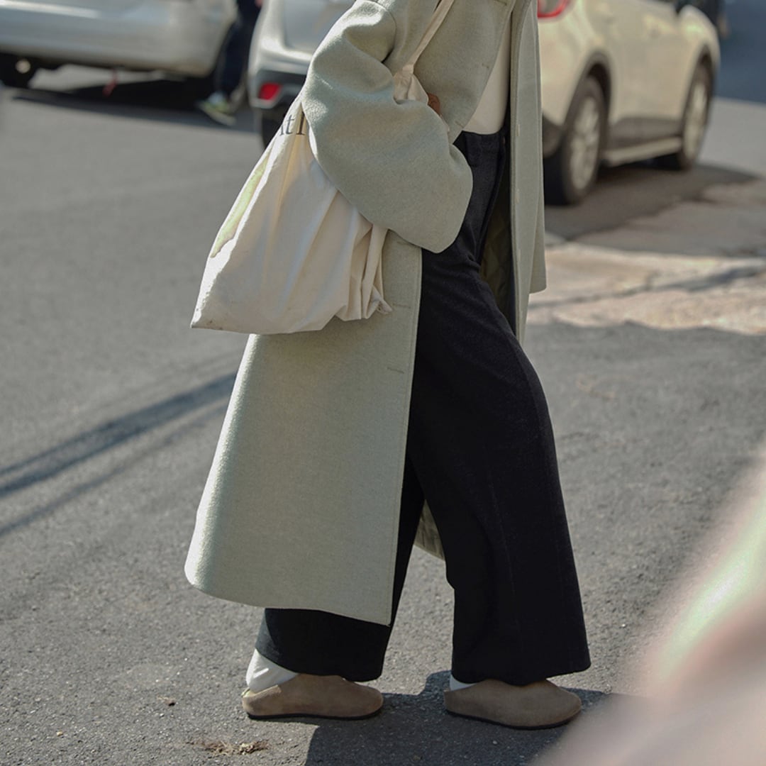 ほどよい厚みと落ち感のある生地を使用し、ハイウエストとワイドストレートのシルエットで脚のラインをすっきりと見せてくれるパンツです。ゆったりとした履き心地ながらも縦のラインを強調するデザインで、デイリーに使いやすい上品なバランスに仕上がっています。
