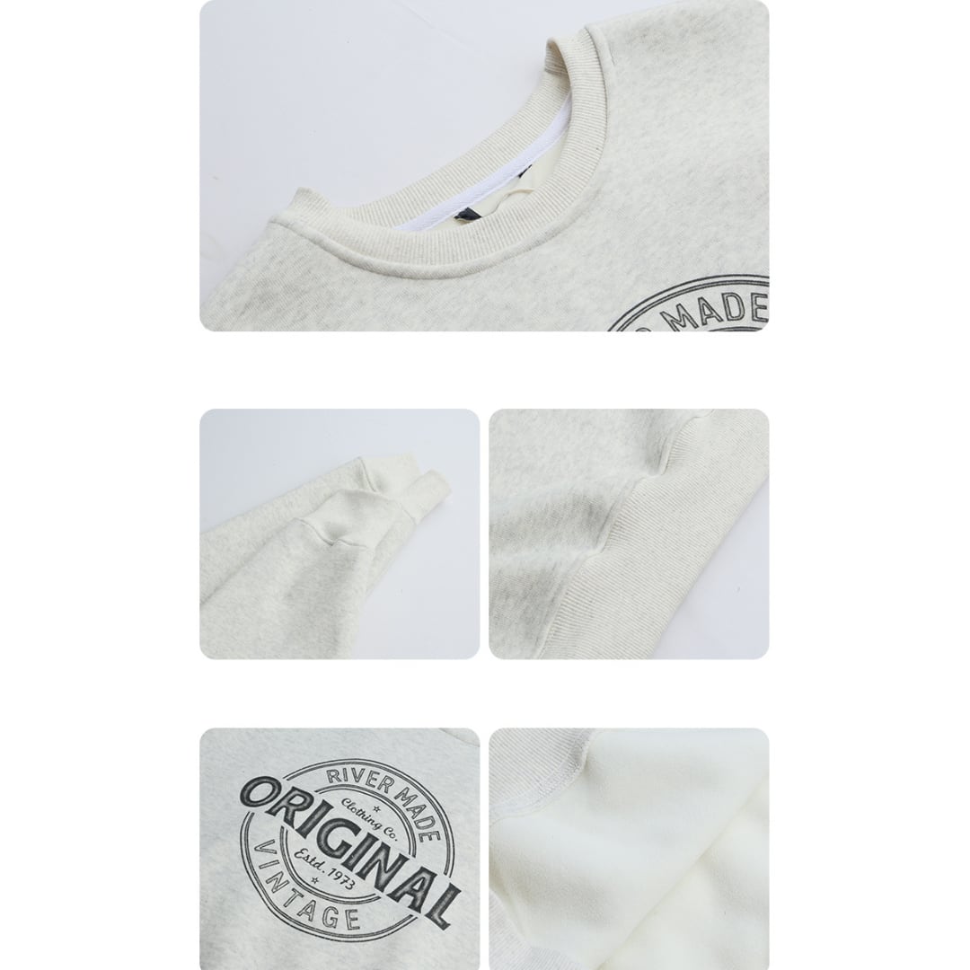 ヴィンテージ風ロゴが目を引く、ベーシックなクルーネックデザインのスウェットトップス。