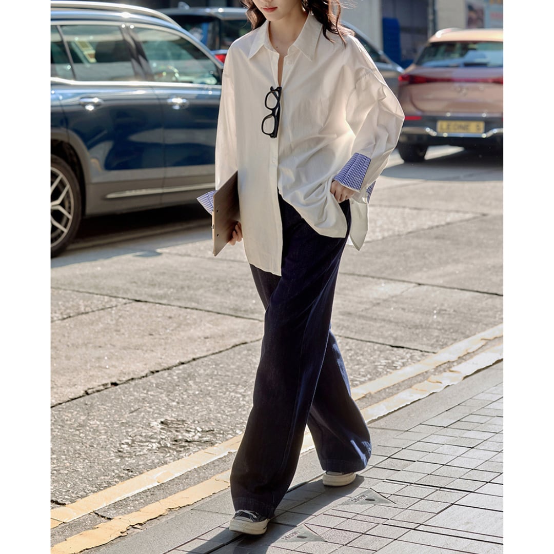 すとんと落ちるストレートラインが美しい、ハイウエスト仕様のワイドデニムパンツ。