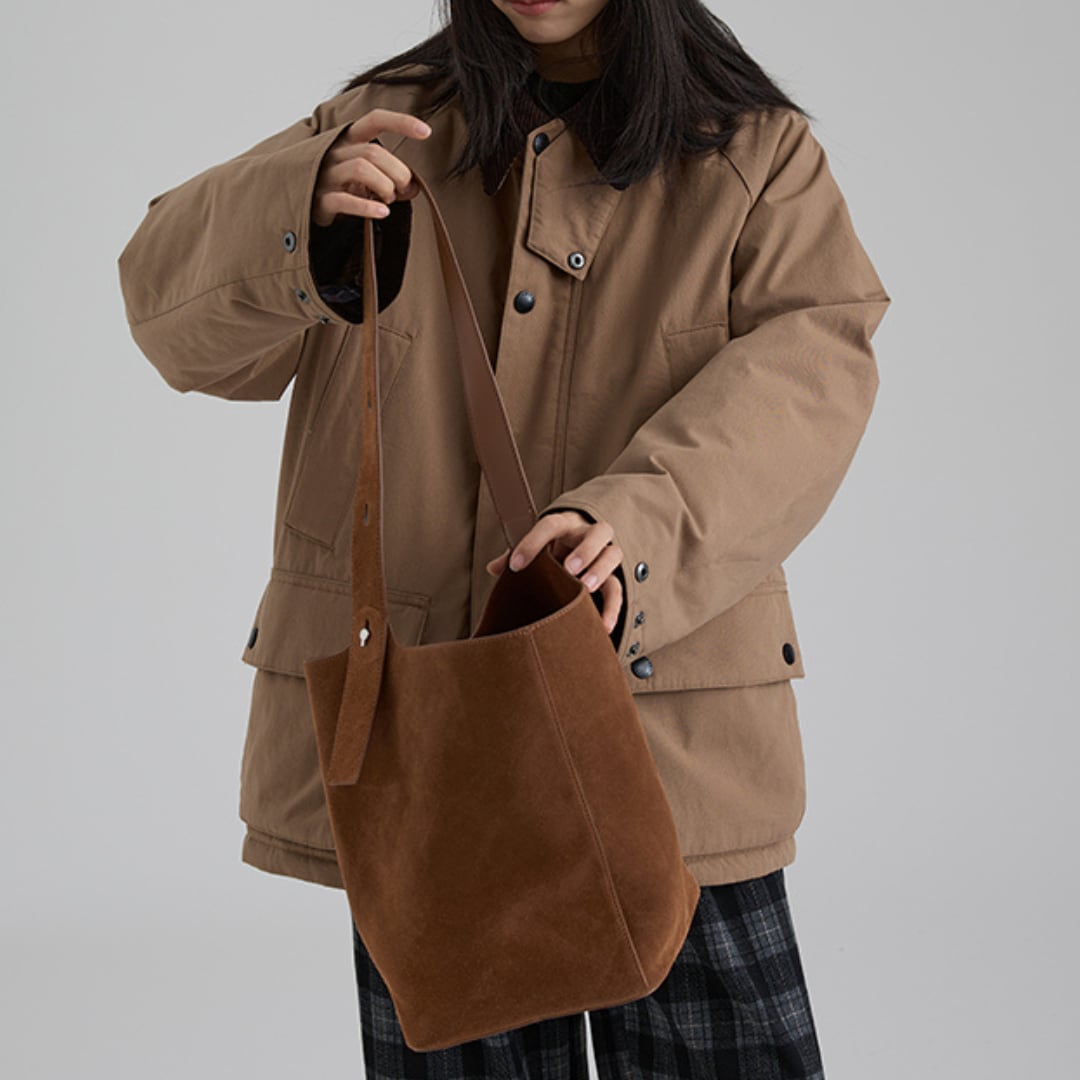 ゆったりとしたシルエットで中に着込めるため、秋冬のデイリースタイルにぴったりです。