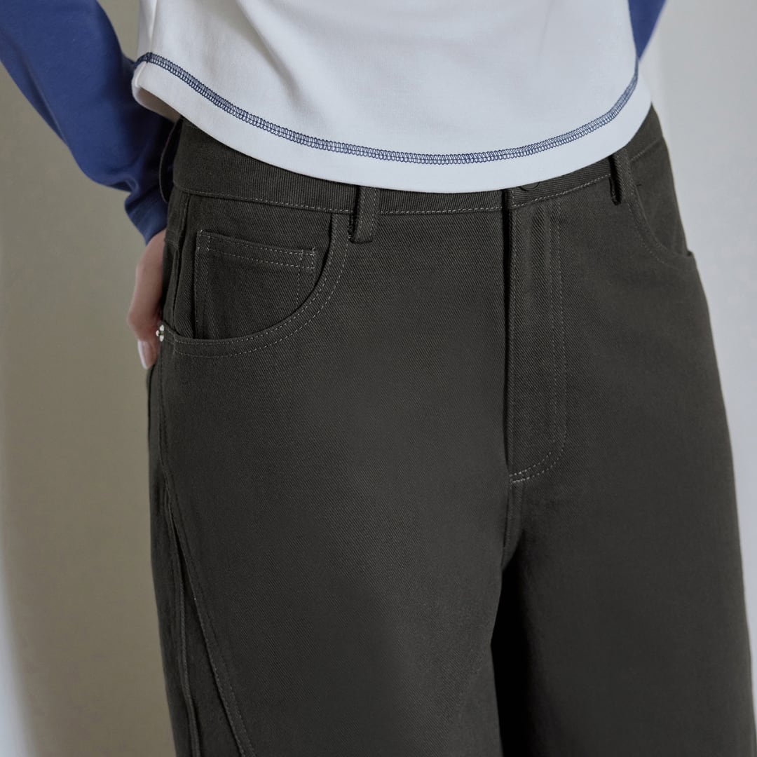 ゆとりあるシルエットと高めのウエスト位置が、スタイルアップを叶えてくれるストレートパンツ。