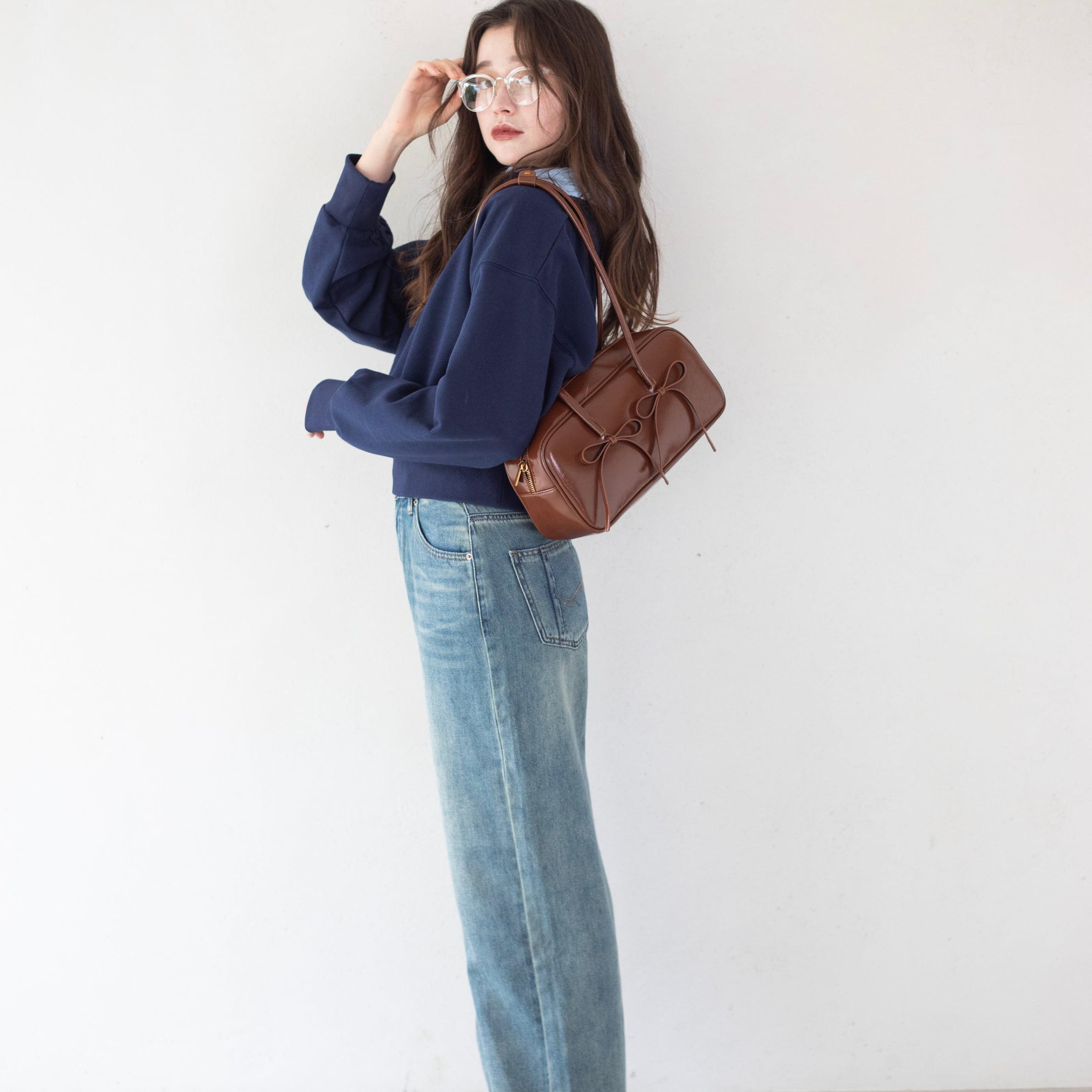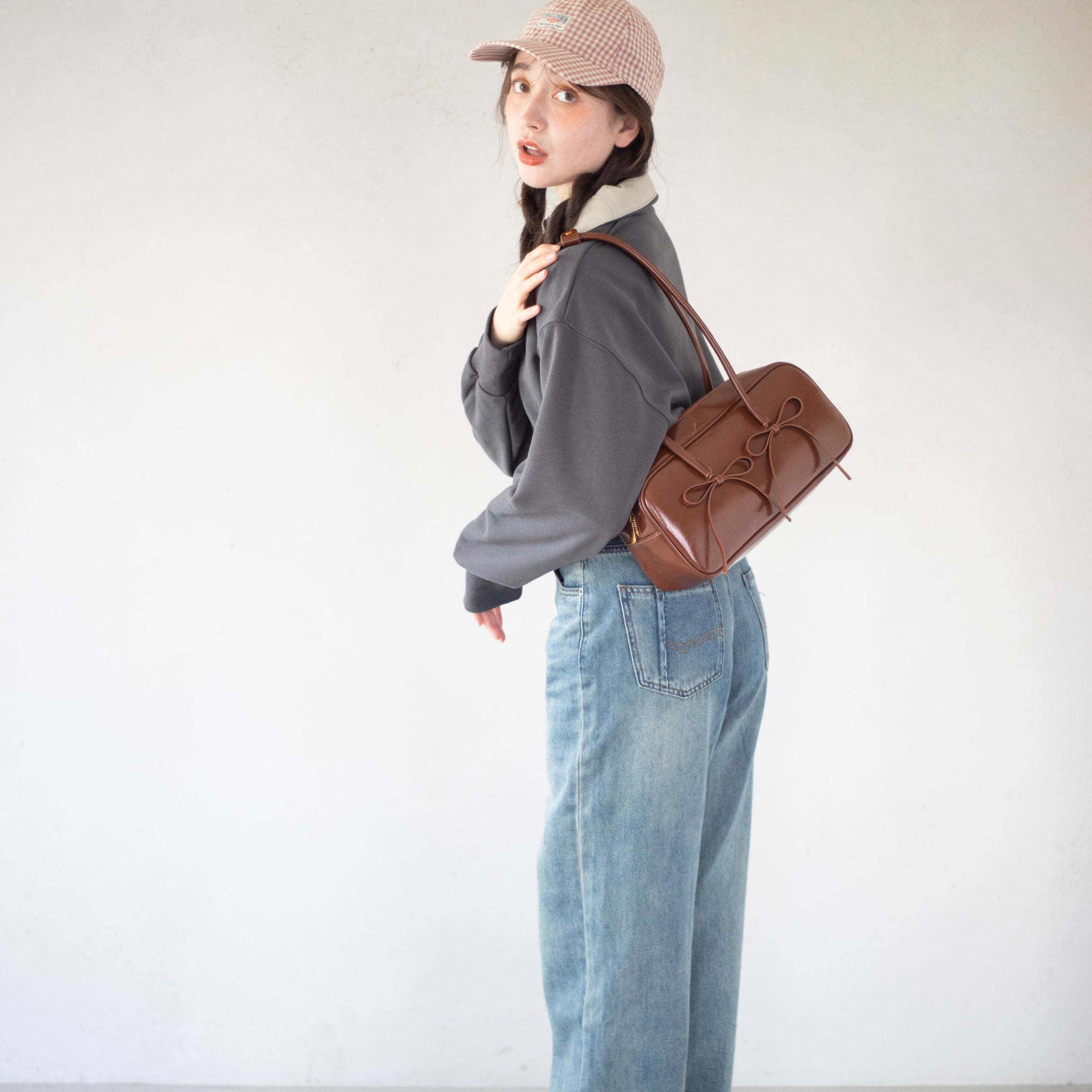 日常使いにシンプルにデニムと合わせるだけで、トレンド感のあるスタイルが完成します◎