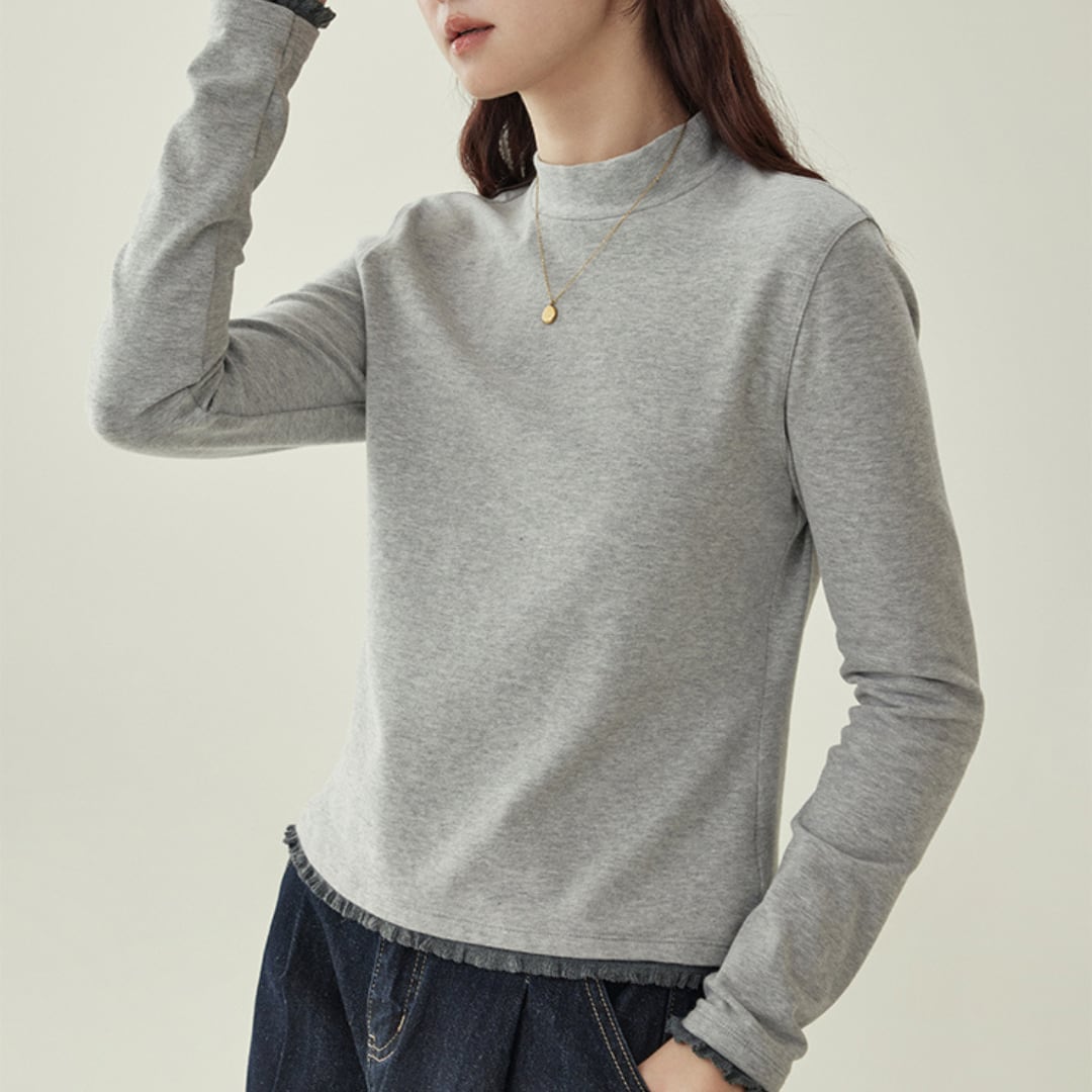 frill hem long sleeve top