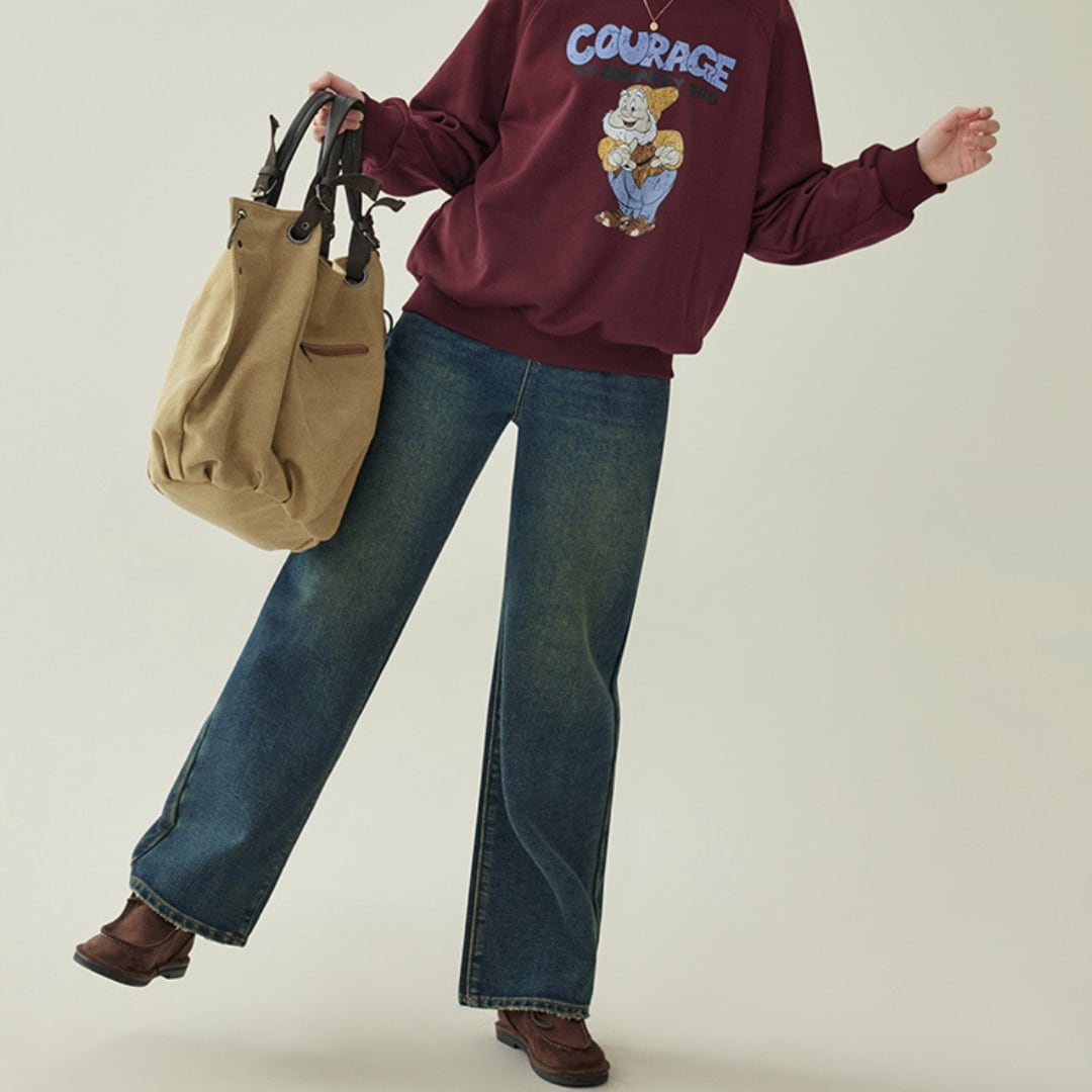 ストレートラインとハイウエストが脚を長く見せる、スタイリッシュなデニムパンツ。