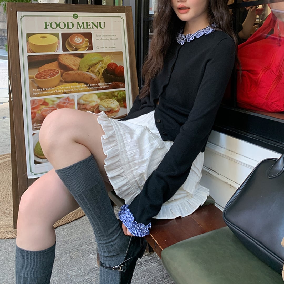 frill collar knit cardigan