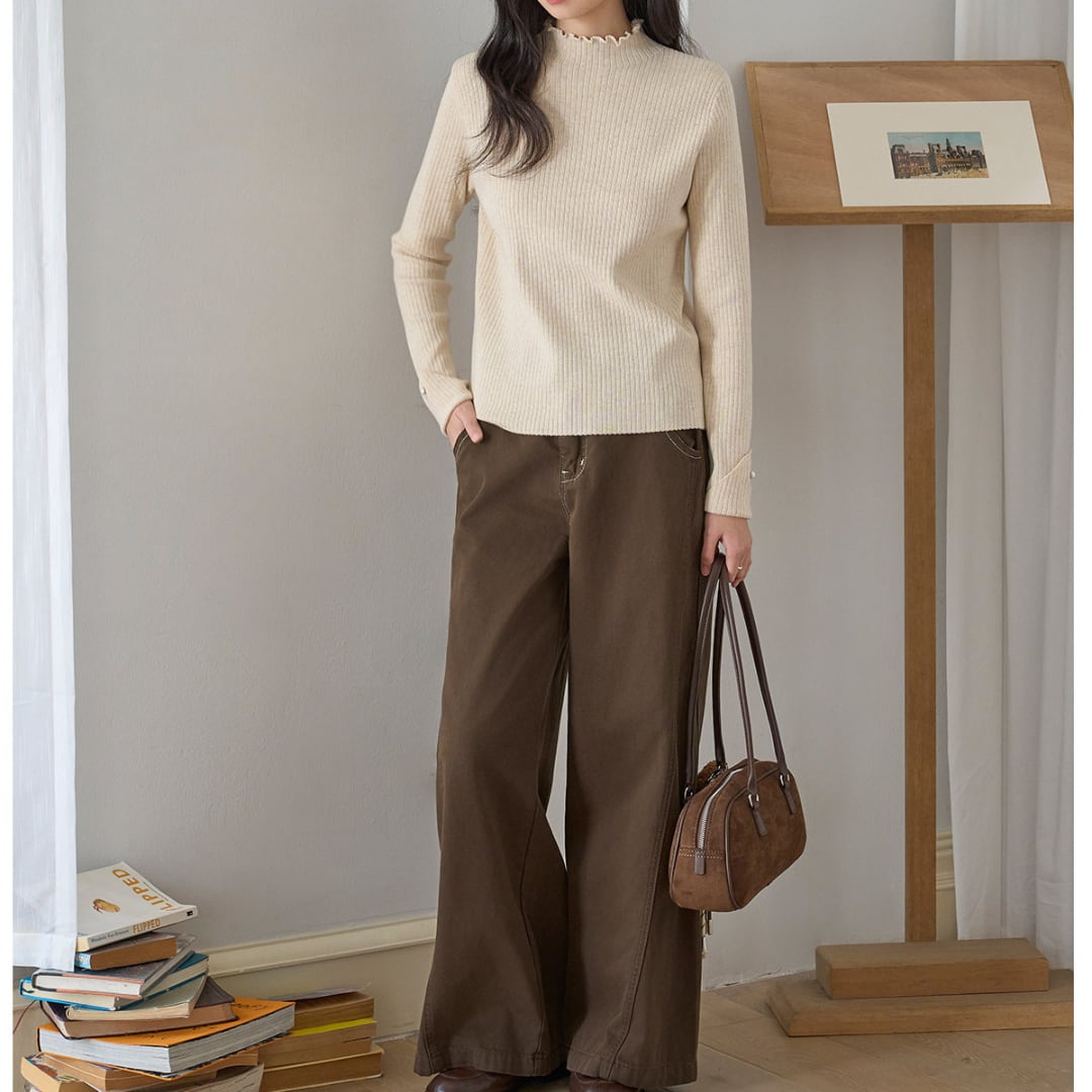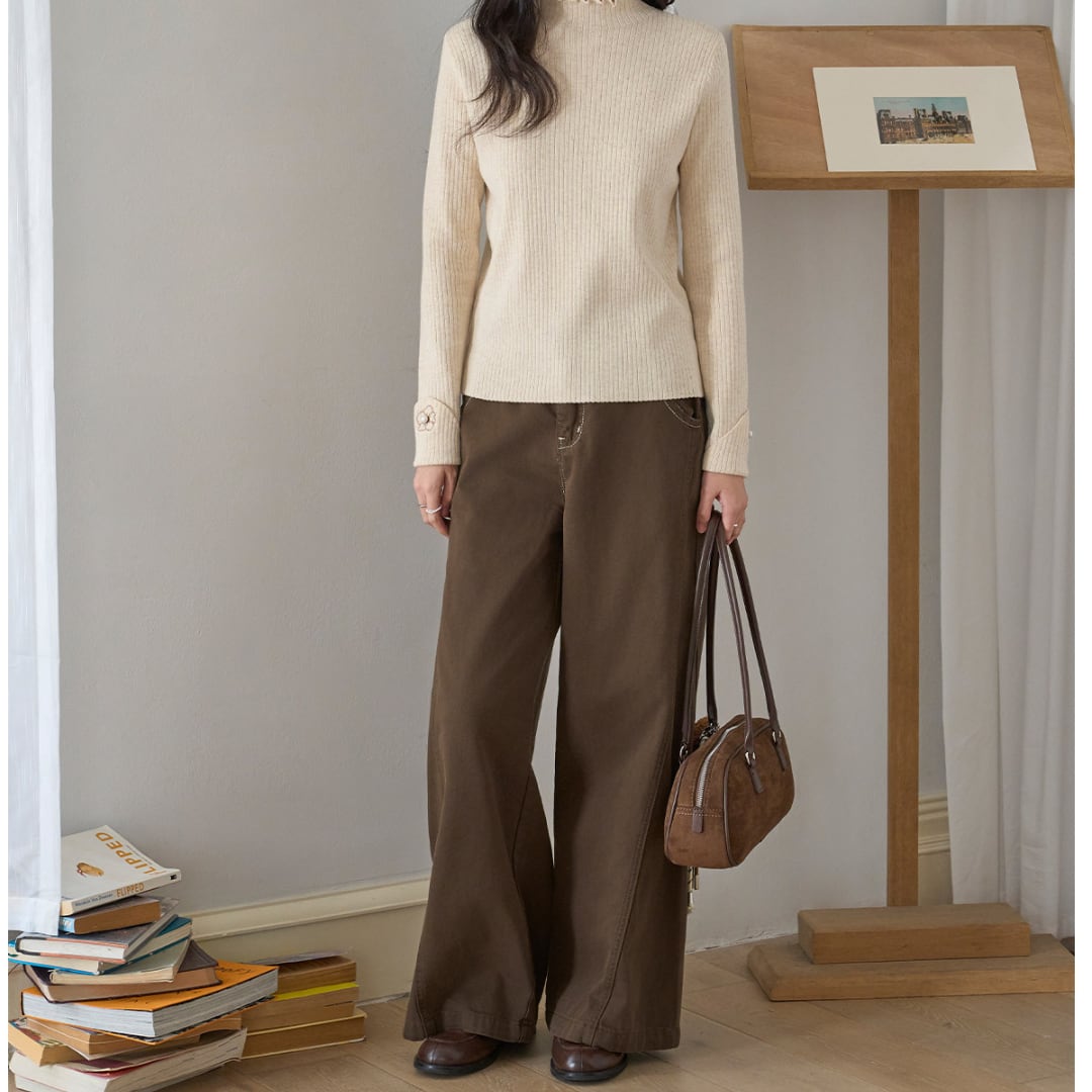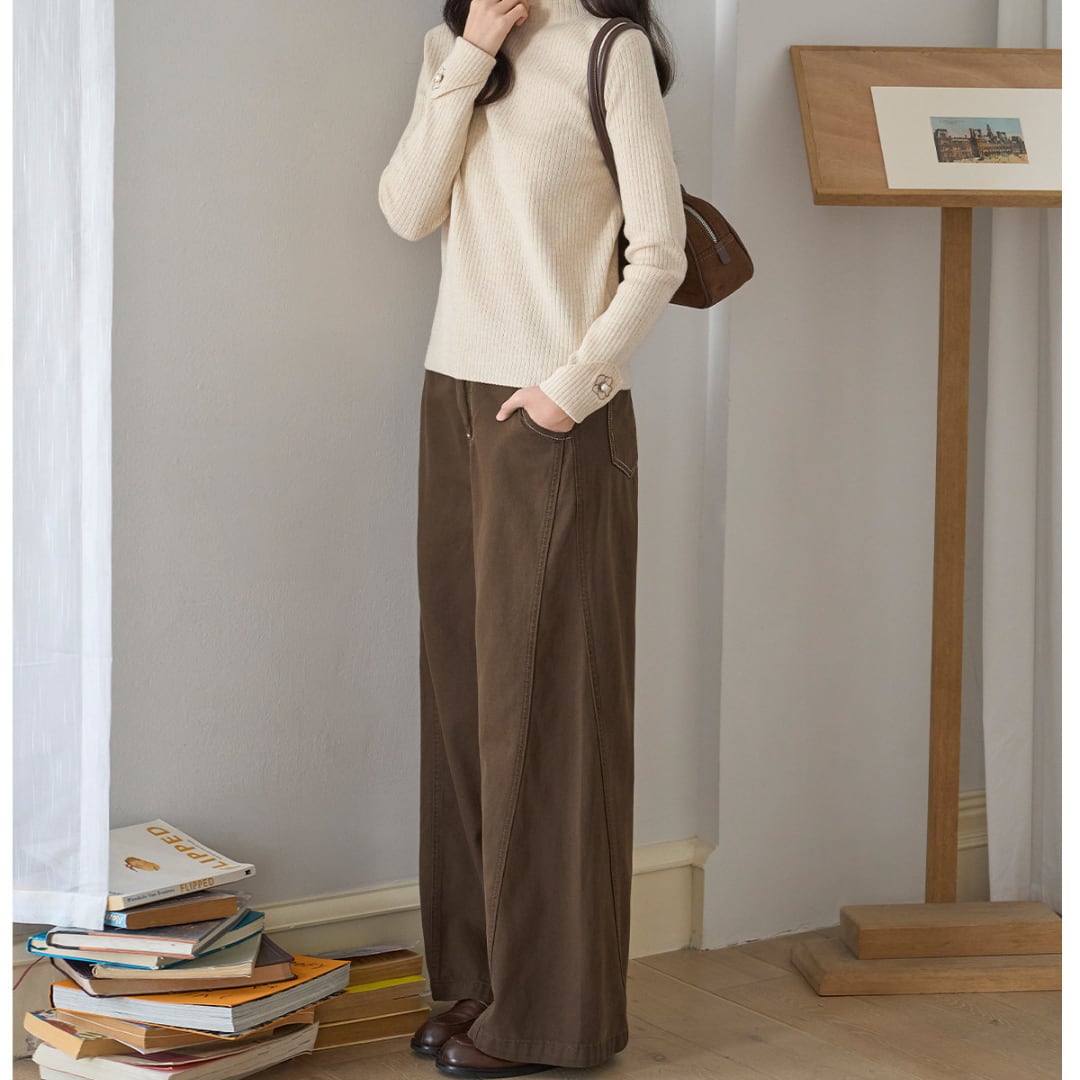 ニットやカットソーと好相性で、ロングシーズン活躍するカジュアルスタイルにおすすめの一本です。