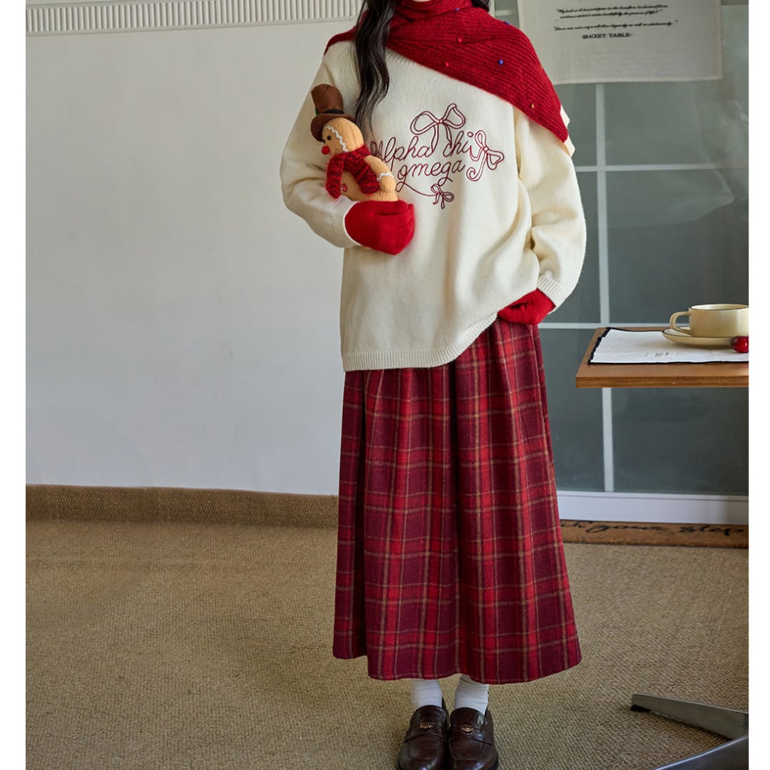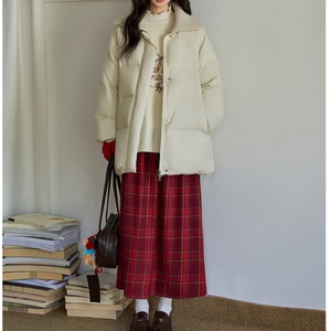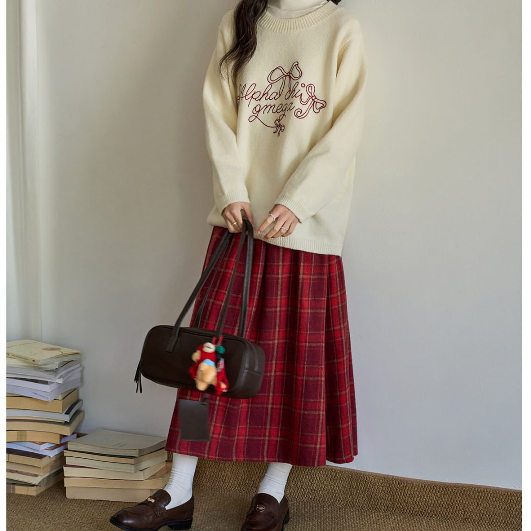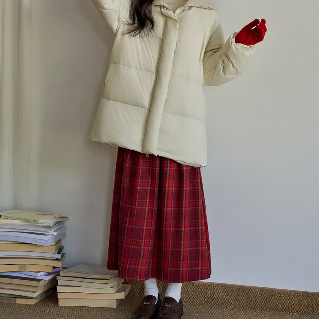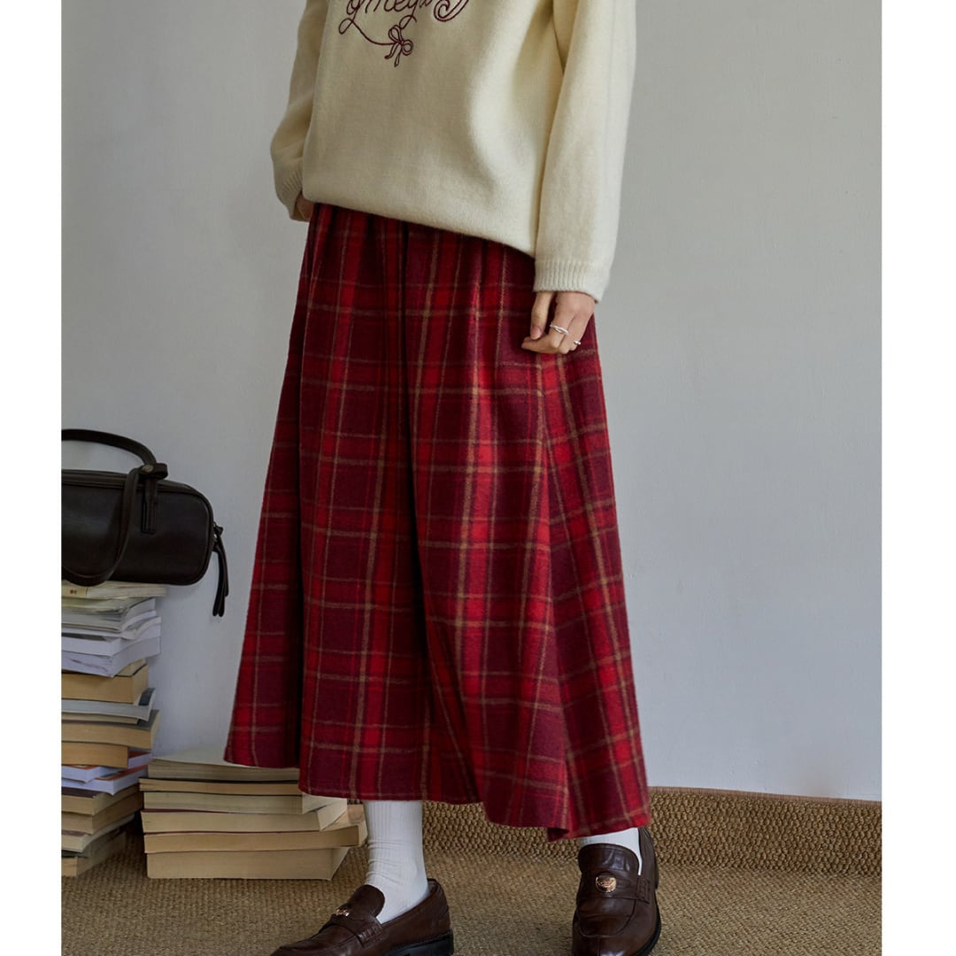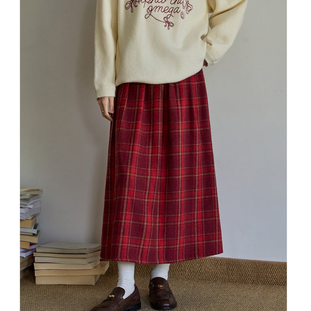 落ち着いたチェック柄と程よく広がるAラインシルエットが上品な印象を演出するスカート。
