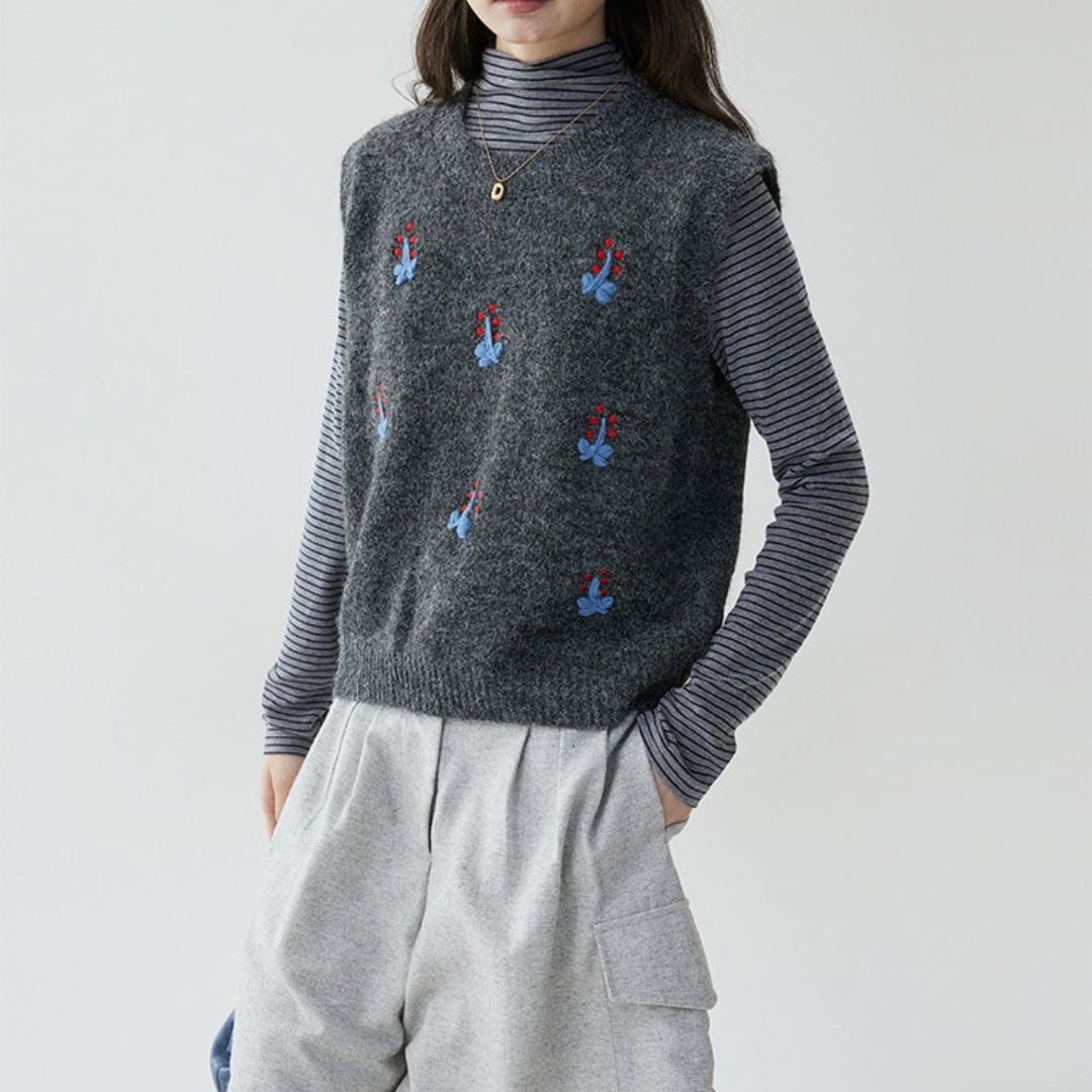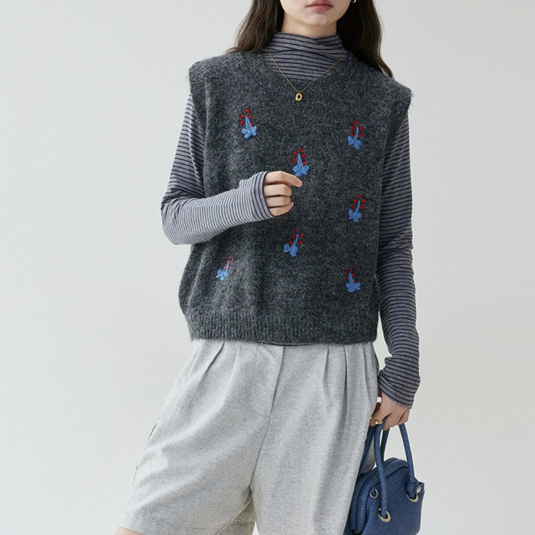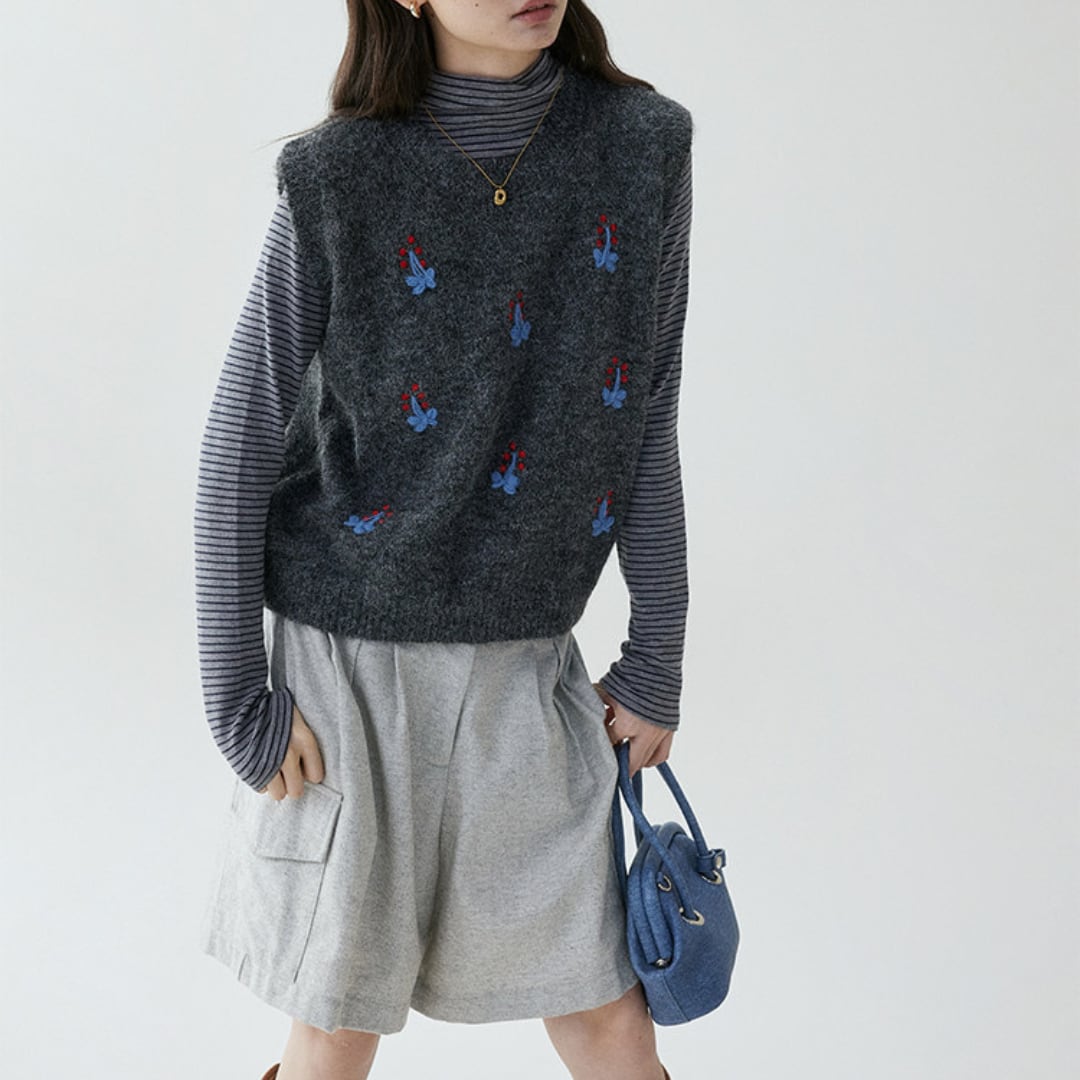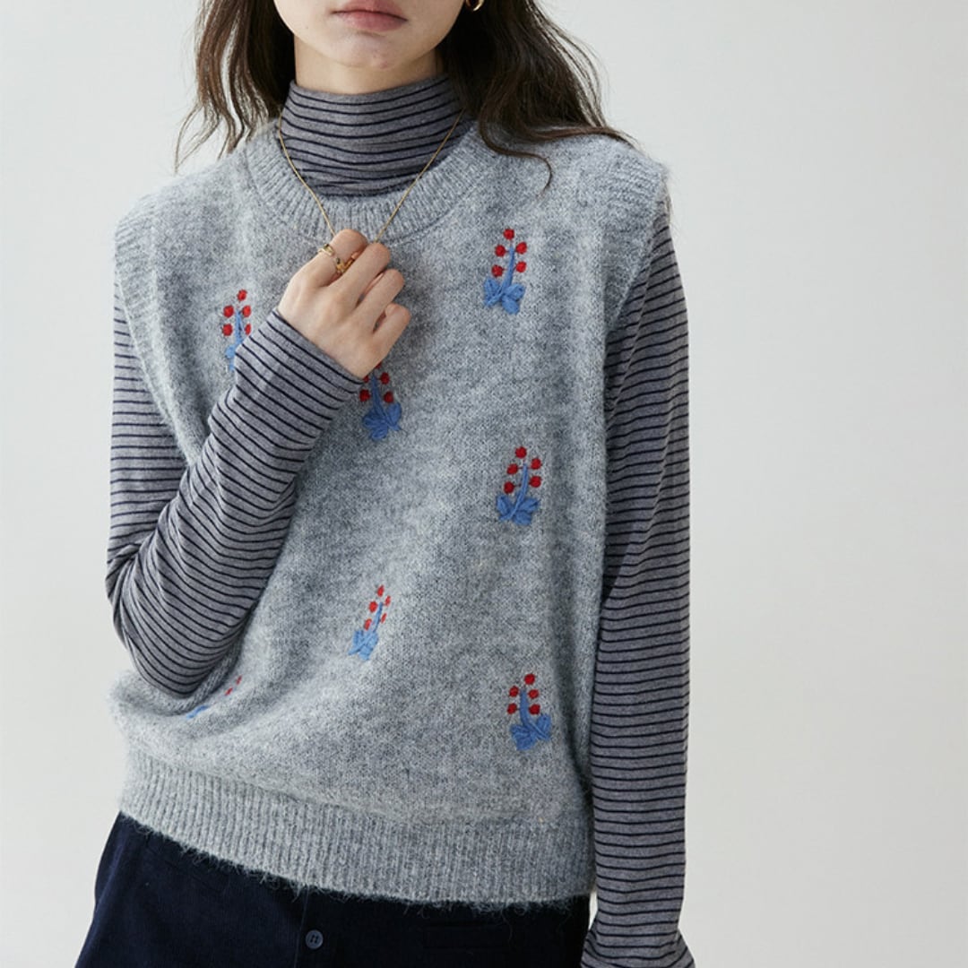 ふんわりとした風合いに愛らしい花の刺繍が映える、ウール混素材のニットベスト。 シャツやカットソーに重ねるだけで季節感のあるレイヤードスタイルが楽しめ、秋冬の装いにぴったりの一枚です。 【カラー】 ネイビー、グレー 【サイズ】 S 着丈:54cm 胸囲:96cm 肩幅:39cm M 着丈:55cm 胸囲:100cm 肩幅:40cm L 着丈:56cm 胸囲:104cm 肩幅:41cm モデル身長165cm 着用サイズM 【素材】 ポリエステル47%、ポリウレタン4%、ウール3% ♦︎選べるお支払い方法 ・クレジットカード決済(VISA/Master/JCB/AMEX) ・キャリア決済(docomo/au/Softbank/Y!mobile) ・Amazon pay(ご利用不可の期間あり) ・Pay-easy ・後払い決済 ✴︎ Erz. ranking top 10 ✴︎ こちらから↓ https://www.erzofficial.com/categories/3617358 [ pickup item]イチオシアイテム↓ https://www.erzofficial.com/categories/3558579 Erz.がご提案する大人のレトロカジュアルって? https://www.erzofficial.com/blog/2021/09/06/123341 【お届けについて】 こちらの商品は海外店舗より直接発送となる為、 ご入金から最短10日〜4週間前後で発送致します。 ◼️注意事項 ・タイミングによっては 商品在庫切れにより 注文キャンセルとさせていただく恐れもございますので、予めご了承くださいませ。 ・こちらは輸入品となります。日本製とは検品基準が異なる為、 ・新品未使用品でもごくわずかな汚れや ほつれがある場合もございます。 ・明らかな不良があった場合お手数ですが、お早めにご連絡をお願い致します。 ご確認後、ご返金、返品対応させていただきますのでご安心ください。 ・仕入れ工場を変えることがあるため、記載サイズと若干異なる場合がございます。 ・商品の色味は、お手持ちのスマートフォンの画面によって実物と若干異なる場合がございます。 ・イメージ違いやサイズ交換等、不良品以外の返品は対応出来かねます。 ・ご注文後のキャンセルは、ご遠慮いただいております。 ———————————— ご購入前にこちらをお読みください。 https://alroom.thebase.in/about 商品番号 VT301Y
