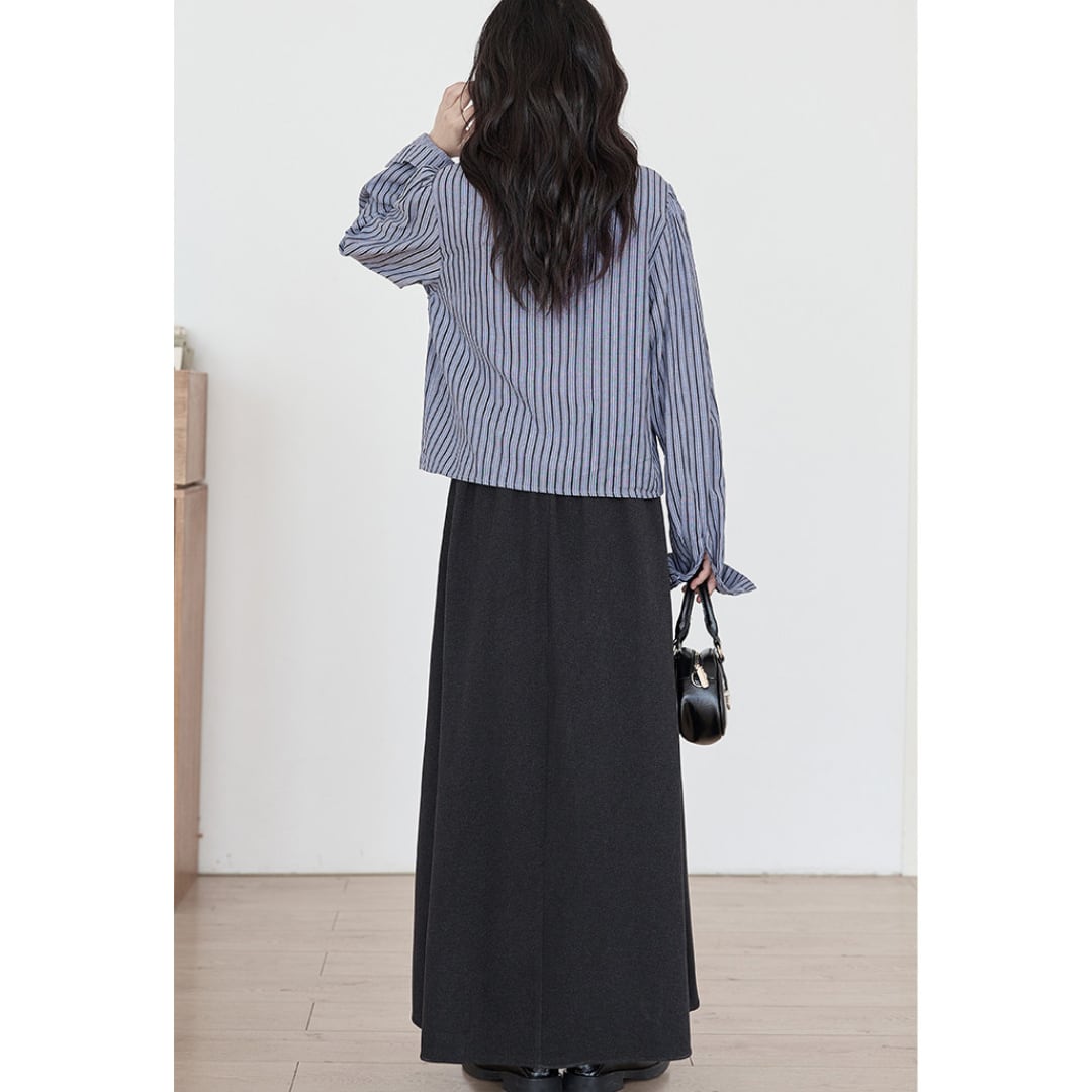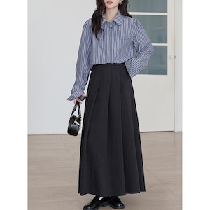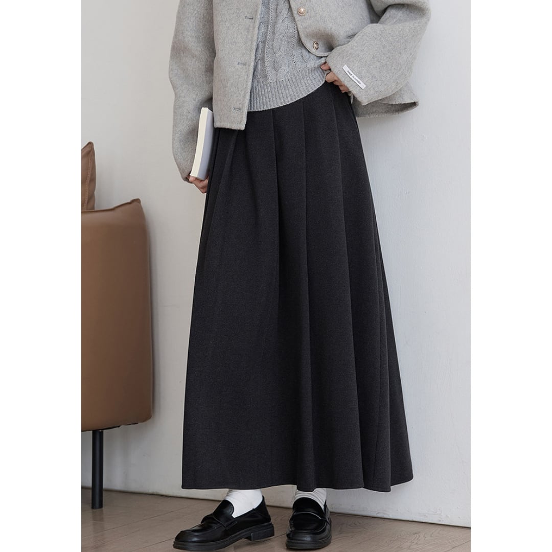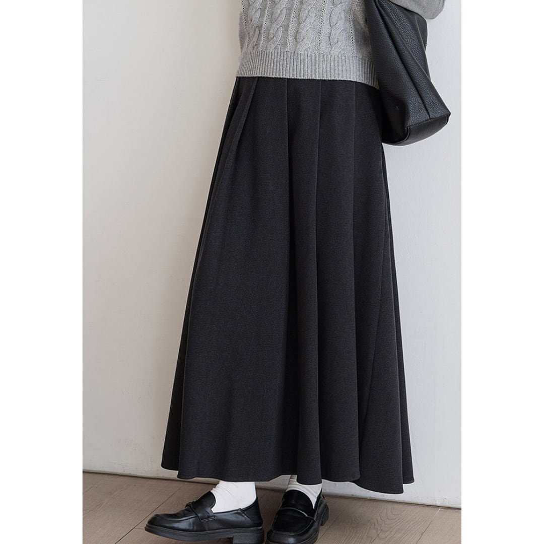 美しいフレアラインが魅力のロング丈Aラインスカートは、腰回りをすっきり見せながら動きのあるシルエットを演出します。ブラウスやニットと合わせて、通勤から休日のお出かけまで幅広いシーンで活躍するアイテムです。